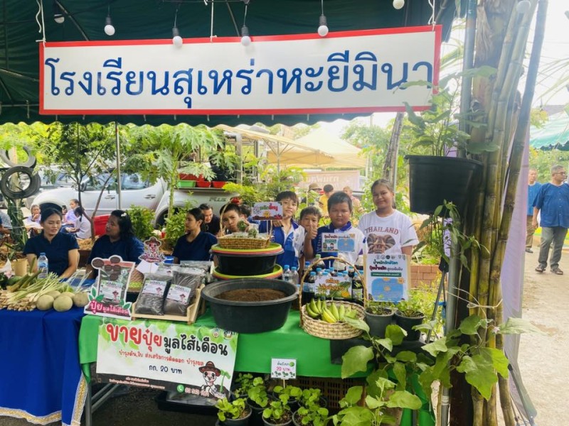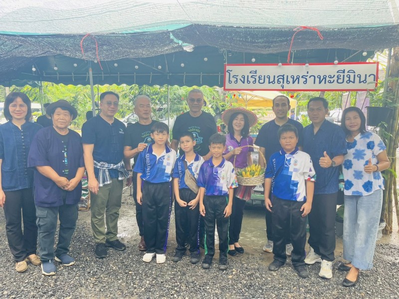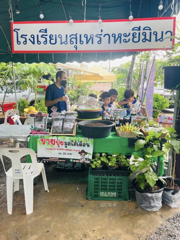 นางพิมวรา บุญศรี ผู้อำนวยการโรงเรียนสุเหร่าหะยีมินา นำตัวแทนคณะครูและนักเรียนจำหน่ายผลิตภัณฑ์ของโรงเรียน…ในกิจกรรมวันดินโลก วันที่ 11 ตุลาคม 2568 ณ อาสาชาวนามหานคร โดยมี ท่านผู้ว่า ชัชชาติ สิทธิพันธุ์ เป็นประธานในพิธีเปิด |