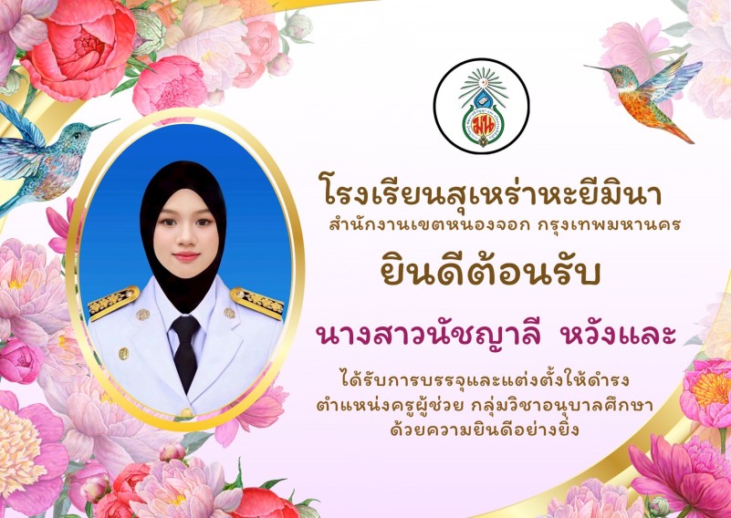 ขอแสดงความยินดีและยินดีต้อนรับคุณครูที่ได้รับการบรรจุแต่งตั้งให้ดำรงตำแหน่งครูผู้ช่วยทุกท่าน