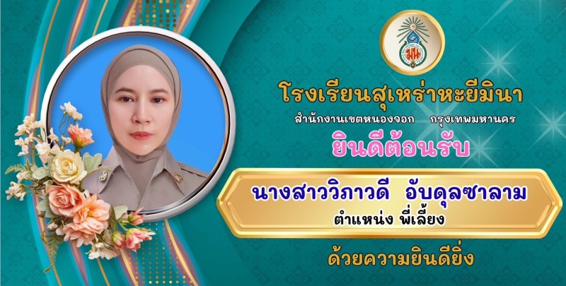 ยินดีต้อนรับ ครูวิภาวดี อับดุลซาลาม เนื่องในโอกาสย้ายมาปฏิบัติหน้าที่ตำแหน่งครูพี่เลี้ยงโรงเรียนสุเหร่าหะยีมินา