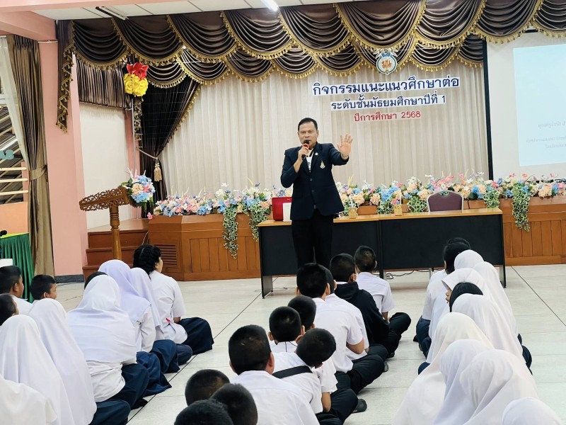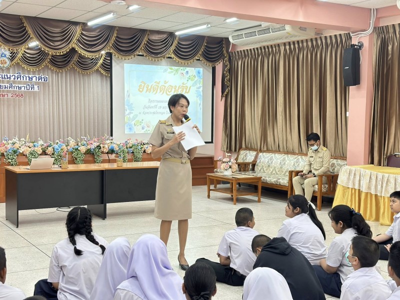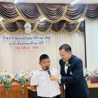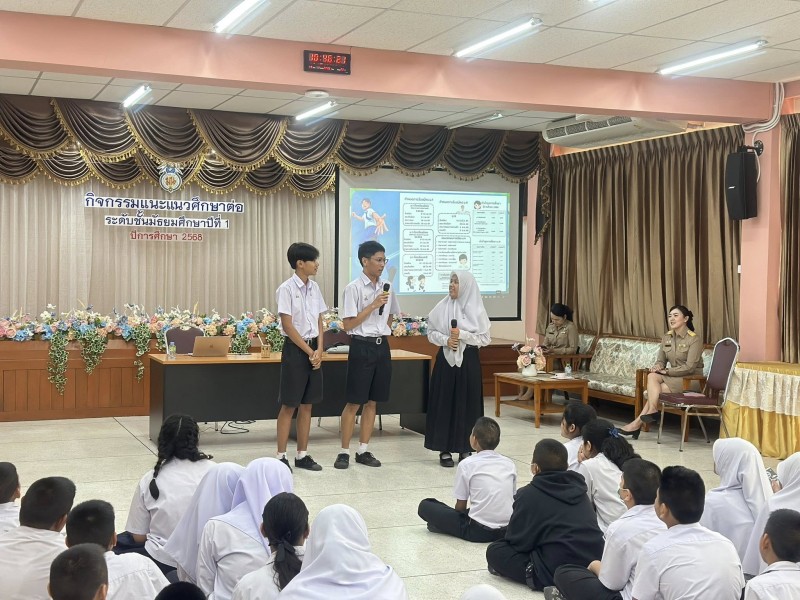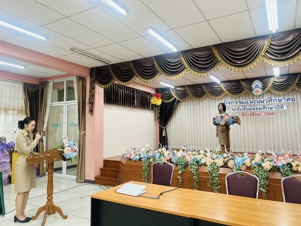 นางพิมวรา บุญศรี ผู้อำนวยการโรงเรียน เปิดกิจกรรม แนะแนวการศึกษาต่อ โดยวิทยากร ข้าราชการเกษียณ คุณจำรัส สำลีขาว การแนะแนวการศึกษาจากโรงเรียนมัธยมวัดหนองจอก และโรงเรียนเตรียมอุดมศึกษาสุวินทวงศ์ |