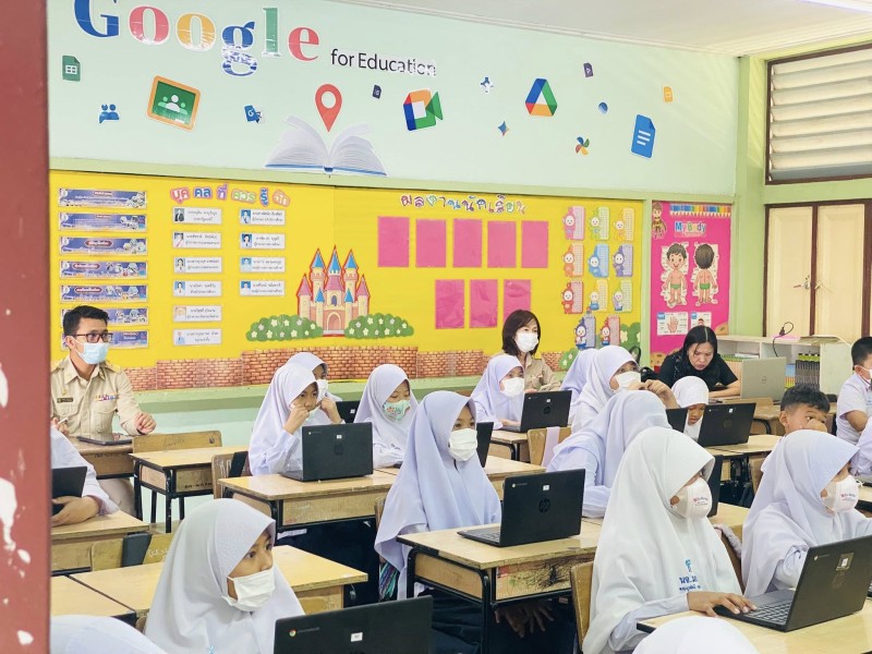 นางพิมวรา บุญศรี ผู้อำนวยการสถานศึกษา ศึกษานิเทศ นางสาวศศิธร ภู่วาว และรองผู้อำนวยการ ติดตามการเรียนการสอนห้องเรียนดิจิทัล ของครูระดับชั้นประถมศึกษาปีที่ 4 และให้คำแนะนำด้านต่างๆ ทั้งนี้โรงเรียนสุเหร่าหะยีมินาเป็น โรงเรียนนำร่องห้องเรียนดิจิทัล และทำการสอนด้วยระบบที่สำนักการศึกษาสนับสนุน ซึ่งนักเรียนชั้นระดับชั้นประถมศึกษาปีที่ 4 ให้ความสนใจและมีความก้าวหน้าในการจัดการเรียนการสอนอย่างดี |