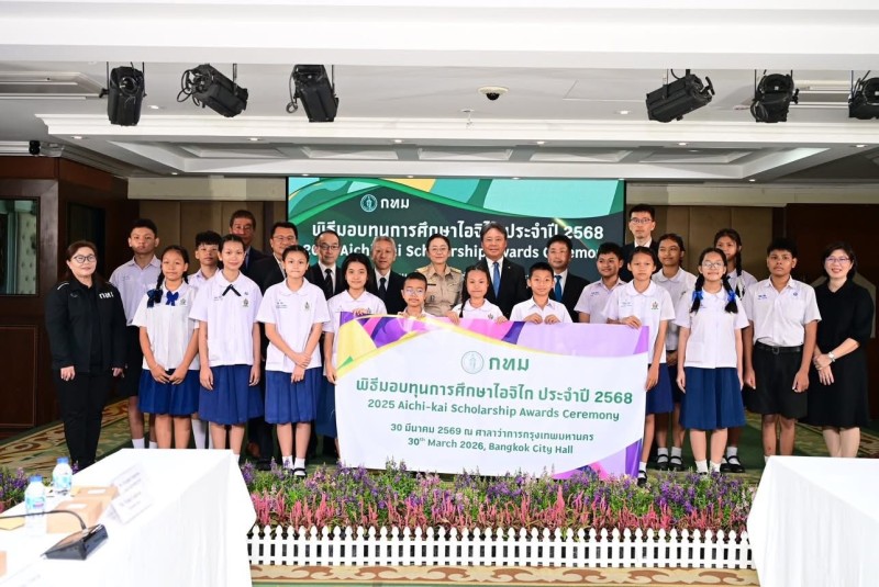 นางสาวอรัญญา พรไชยะ รองปลัดกรุงเทพมหานคร ประธานในพิธีมอบทุนการศึกษาชมรมไอจิไก (Aijikai) ประจำปี 2568 ให้แก่นักเรียนในโรงเรียนสังกัดกรุงเทพมหานคร โดยมี นายชินทาโร่ ทาเคอุจิ ประธานชมรมไอ จิไก พร้อมด้วยคณะผู้บริหารชมรมฯ คณะครู และนักเรียนจำนวน 15 คน เข้าร่วมพิธี