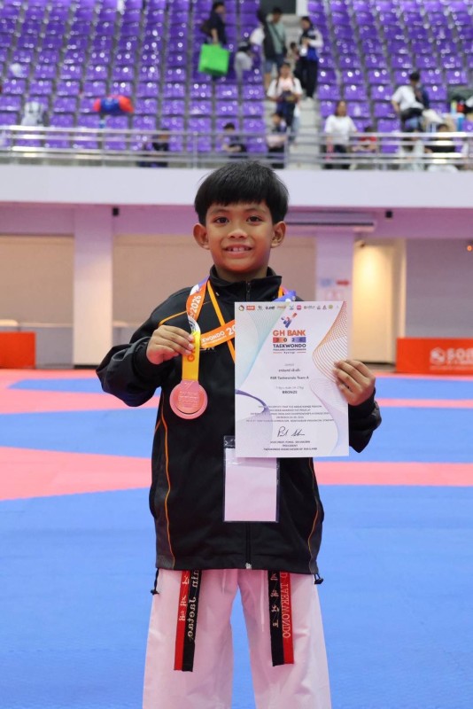 โรงเรียนสุเหร่าหะยีมินา ขอแสดงความยินดีกับ ด.ช. ธานินทร์ เจ๊ะเต๊ะ นักเรียนชั้น ป.2/1 ได้รับรางวัลรองชนะเลิศ อันดับ 2 #เหรียญทองแดง การแข่งขันกีฬาเทควันโด รุ่นอายุ 7-8 ปีชาย น้ำหนัก 24-27 kg. ประเภทต่อสู้ ในการแข่งขันกีฬาเทควันโด รายการใหญ่ระดับประเทศ GH BANK เทควันโดชิงชนะเลิศแห่งประเทศไทย ประจำปี 2569 ณ อาคารนนทบุรียิมเนเซียม สนามกีฬาองค์การบริหารส่วนจังหวัดนนทบุรี วันที่ 26 มีนาคม 2569 |
