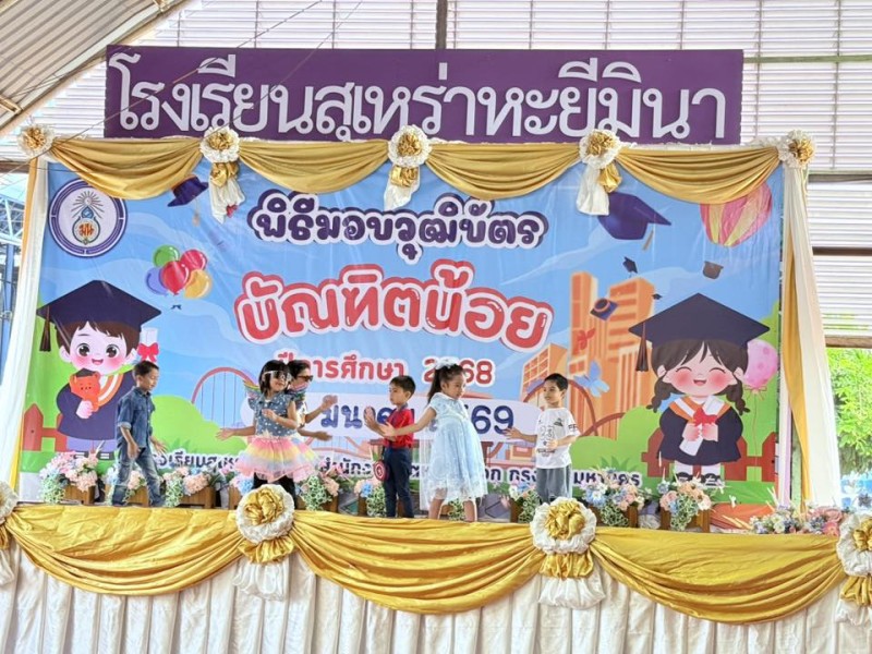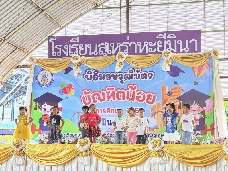 โรงเรียนสุเหร่าหะยีมินา โดย ผอ.พิมวรา บุญศรี จัดพิธีมอบวุฒิบัตร บัณฑิตน้อย ให้กับนักเรียนระดับชั้นอนุบาล 3 เพื่อแสดงความยินดีที่นักเรียนสำเร็จการศึกษาตามหลักสูตรปฐมวัย สร้างความภาคภูมิใจในตนเอง เสริมสร้างขวัญกำลังใจเพื่อศึกษาต่อในระดับประถมศึกษา ตลอดจนส่งเสริมความกล้าแสดงออกและพัฒนาการรอบด้านทั้งร่างกาย อารมณ์ สังคม และสติปัญญา ณ โรงเรียนสุเหร่าหะยีมินา |