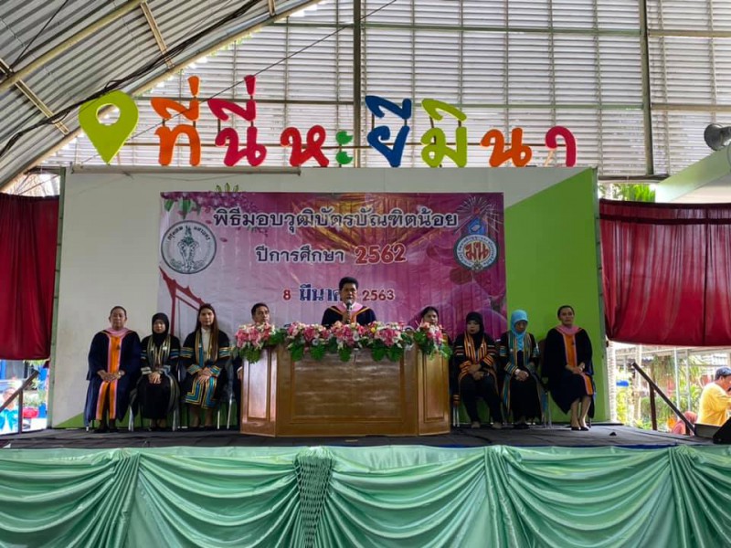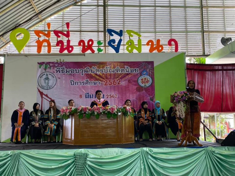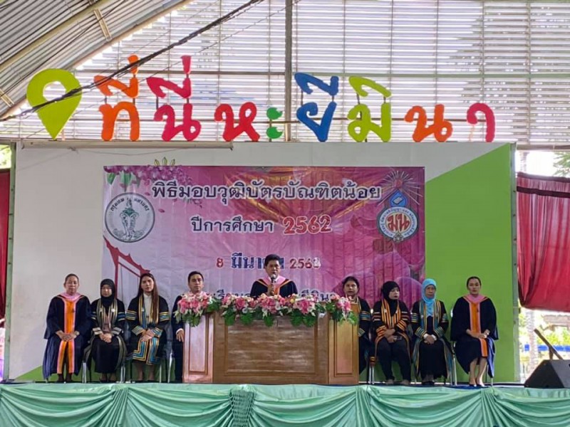 โรงเรียนสุเหร่าหะยีมินา โดย ผอ.ศักดิ์ดา ลาวัง จัดพิธีมอบวุฒิบัตรบัณฑิตน้อย ให้กับนักเรียนระดับชั้นอนุบาล 2 ที่จบการศึกษาในระดับชั้นอนุบาล เพื่อเลื่อนชั้นไประดับชั้นประถมศึกษาในปีการศึกษาต่อไป ณ โรงเรียนสุเหร่าหะยีมินา วันที่ 8 มีนาคม 2563 |