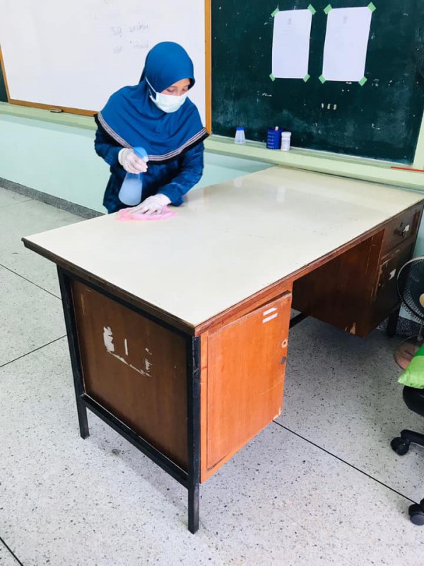 โรงเรียนสุเหร่าหะยีมินา โดย ผอ.ศักดิ์ดา ลาวัง นำผู้บริหาร ครู และบุคลากร ร่วมกันทำ Big cleaning day เช็ดทำความสะอาดตามจุดต่าง ๆ รวมทั้งห้องเรียน ด้วยน้ำยาฆ่าเชื้อ ตามมาตรการควบคุมและป้องกันการแพร่ระบาดของโรค Covid-19 ณ โรงเรียนสุเหร่าหะยีมินา วันที่ 16 มีนาคม 2563 |