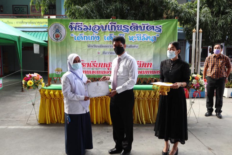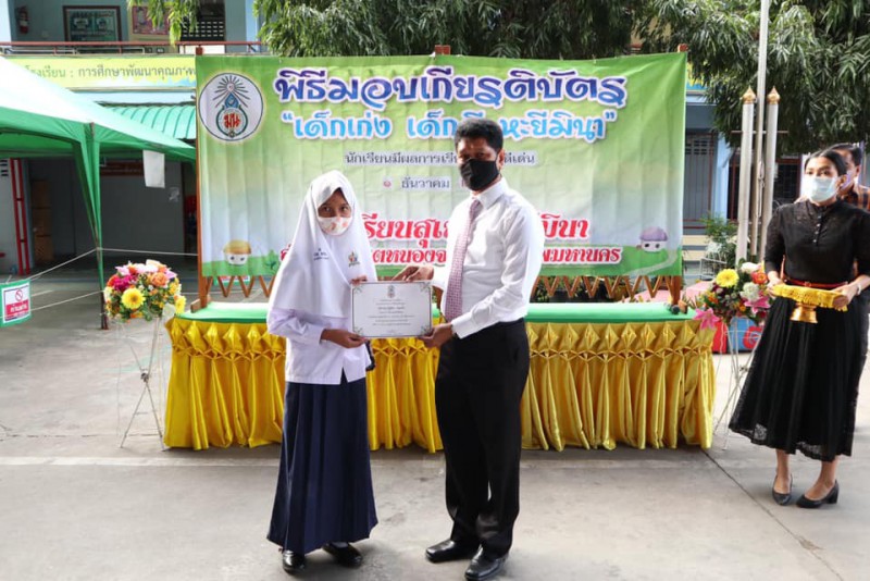พิธีมอบเกียรติบัตรเพื่อแสดงความยินดีแก่นักเรียนที่มีผลการเรียนดี