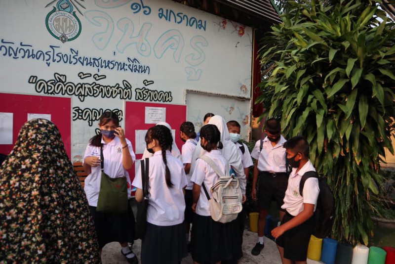 นายวุฒิภัทร คำประกอบ ผู้อำนวยการเขตหนองจอก มอบหมายให้นางโสภิดา พึ่งวงศ์ญาติ ผู้ช่วยผู้อำนวยการเขตหนองจอก นางธมญย์รัตน์ เจริญรัตน์ หัวหน้าฝ่ายการศึกษาเขตหนองจอก และนายวิลัน ทำไร่ ศึกษานิเทศก์ ตรวจเยี่ยมให้กำลังใจนักเรียนชั้นประถมศึกษาปีที่ 6 เครือข่ายโรงเรียนที่ 41 และคณะกรรมการดำเนินการทดสอบระดับชาติขั้นพื้นฐาน O-NET ณ สนามสอบโรงเรียนสุเหร่าหะยีมินา โดยมีนายศักดิ์ดา ลาวัง ผู้อำนวยการสถานศึกษาโรงเรียนสุเหร่าหะยีมินา นางวาสนา บุญทน ผู้อำนวยการสถานศึกษาโรงเรียนบ้านลำต้นกล้วย นางวรางคณา หวัดสนิท ผู้อำนวยการสถานศึกษาโรงเรียนสุเหร่าอีรั้ว และ นางสาวนภาพร ศรีทน ผู้อำนวยการสถานศึกษาโรงเรียนอิสลามลำไทรให้การต้อนรับ ณ โรงเรียนสุเหร่าหะยีมินา วันที่ 13 มีนาคม 2564 |