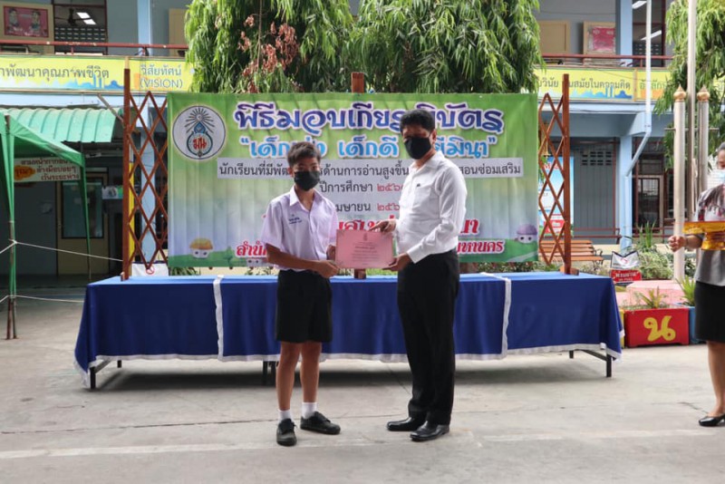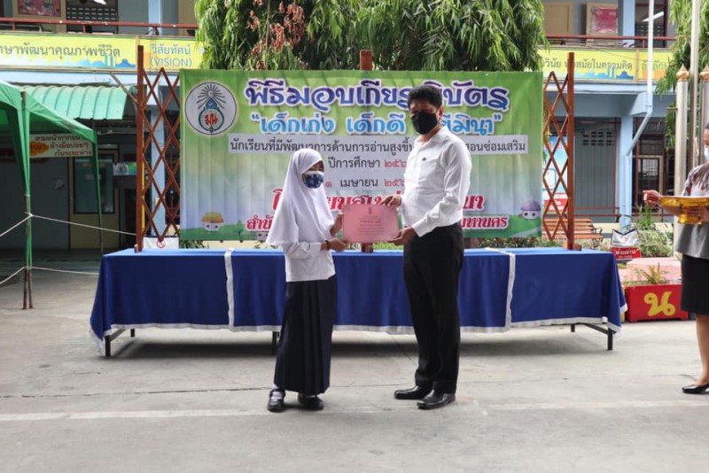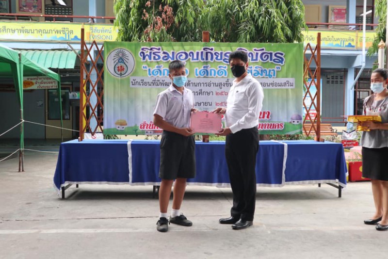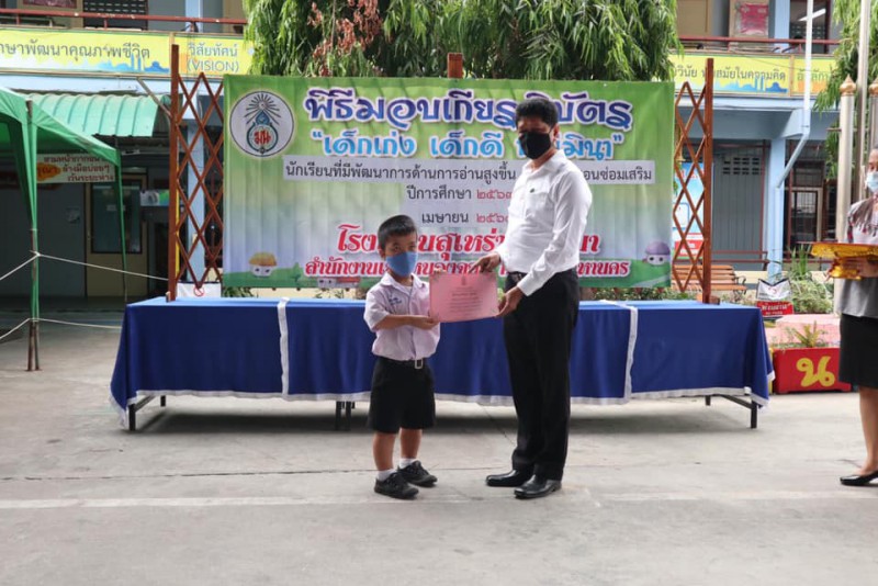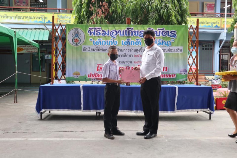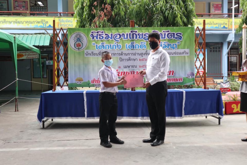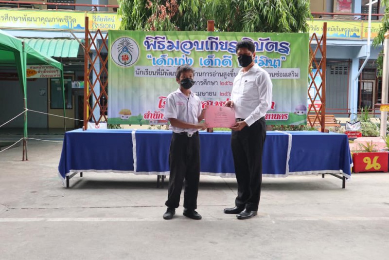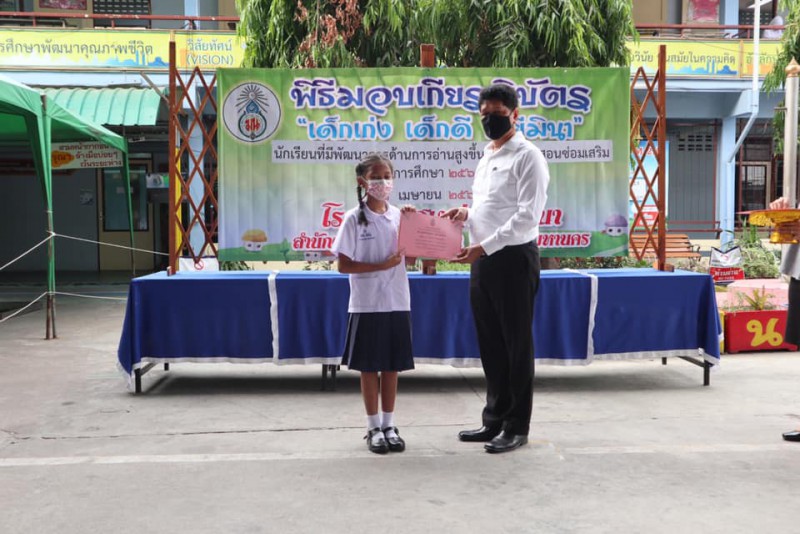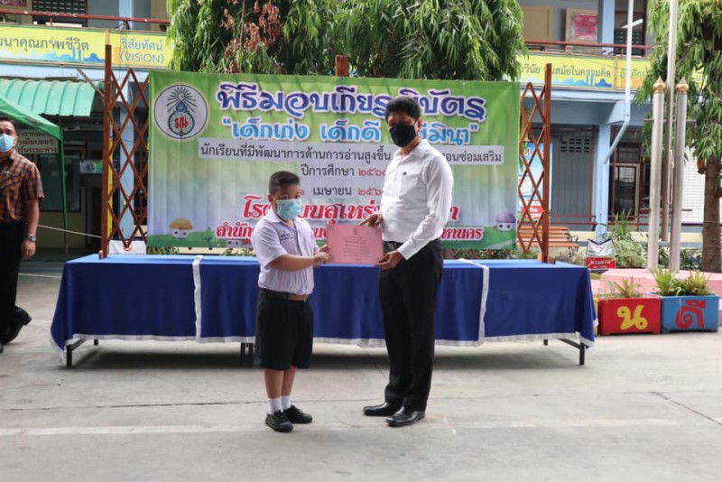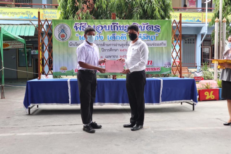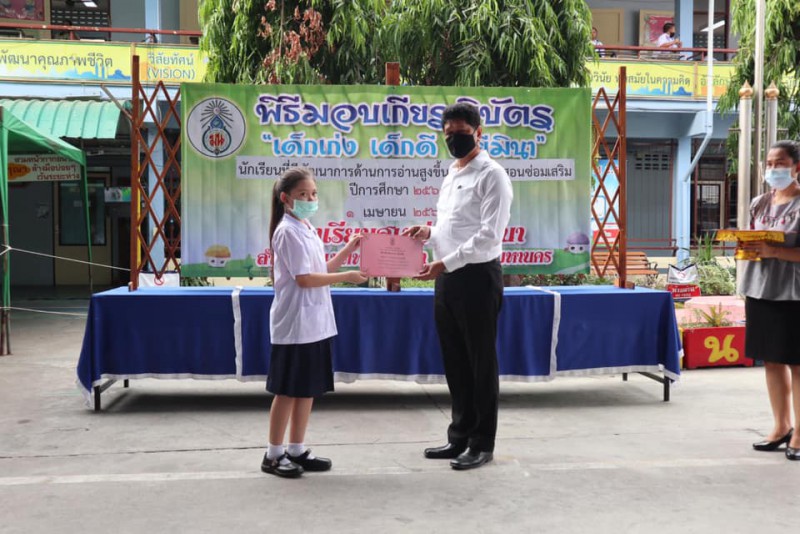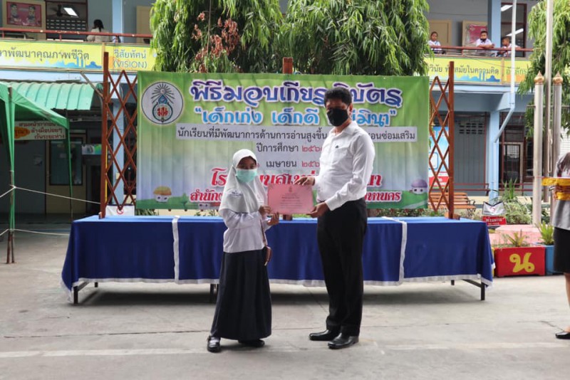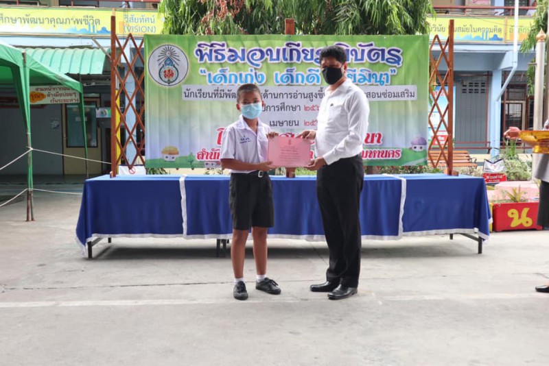 พิธีมอบเกียรติบัตรให้กับนักเรียนที่มัพัฒนาการด้านการอ่านสูงขึ้น จากกิจกรรมการสอนซ่อมเสริม