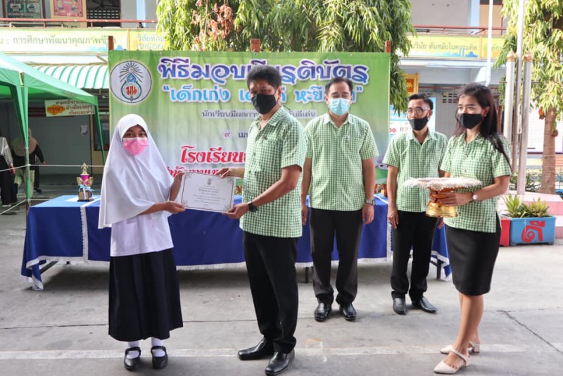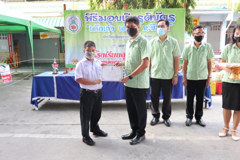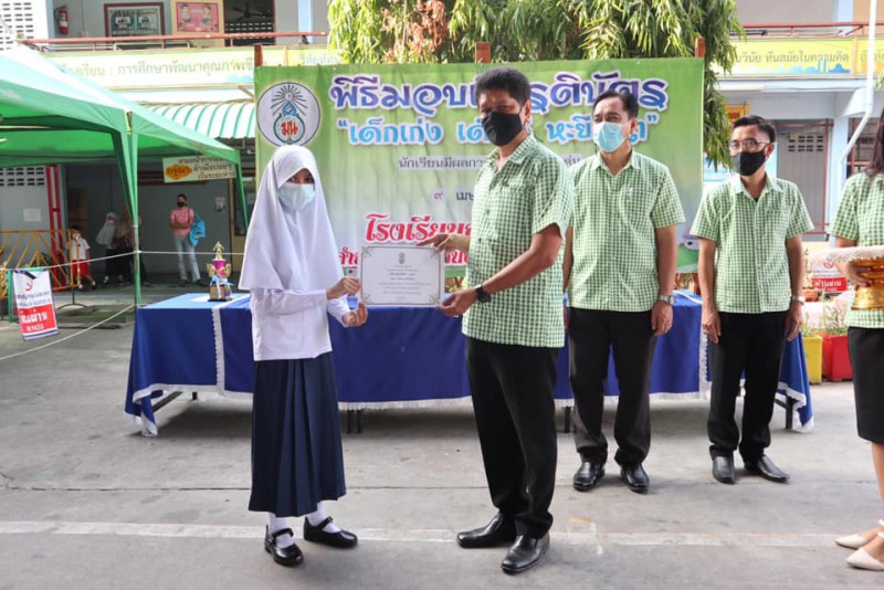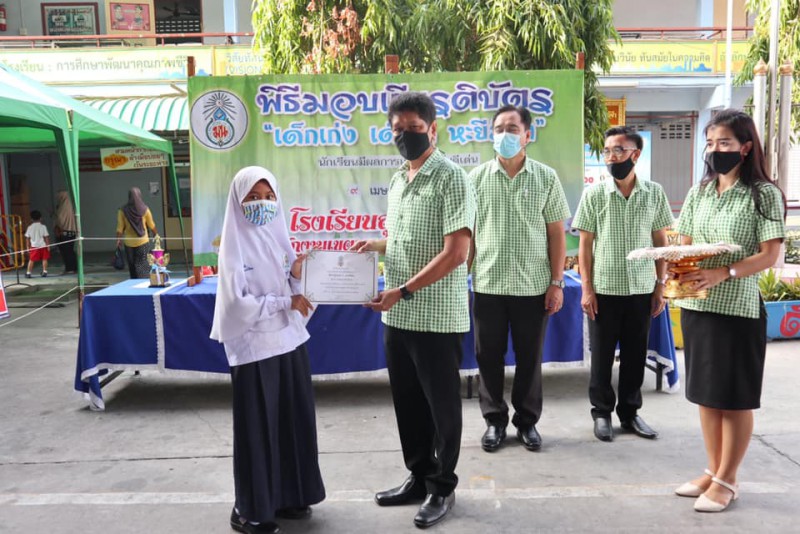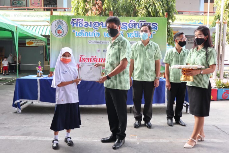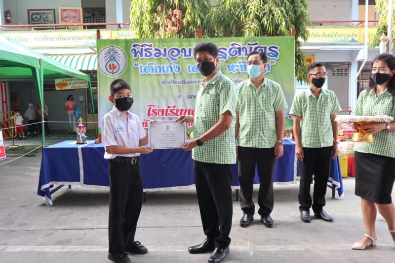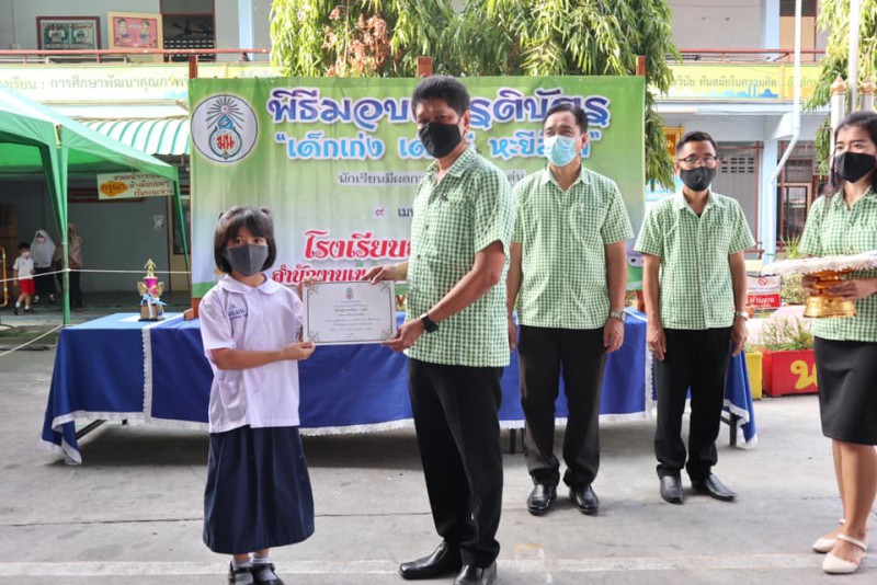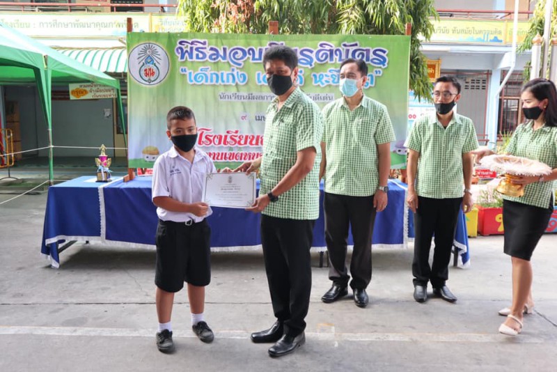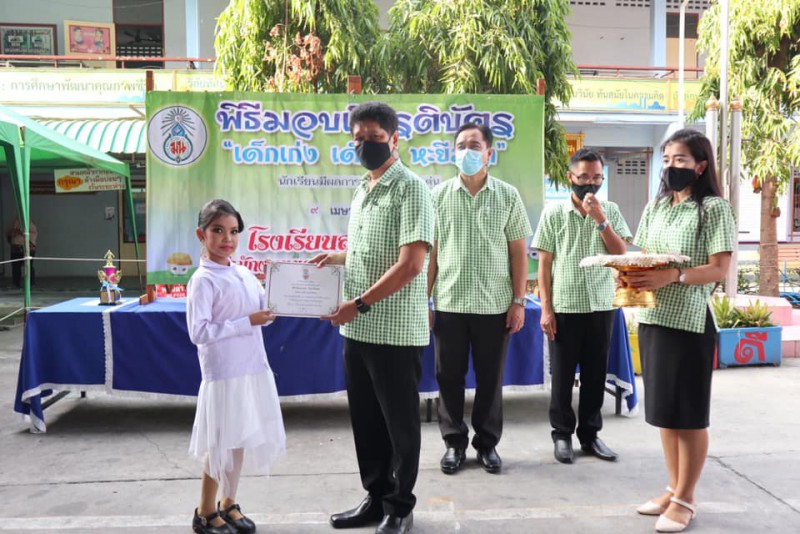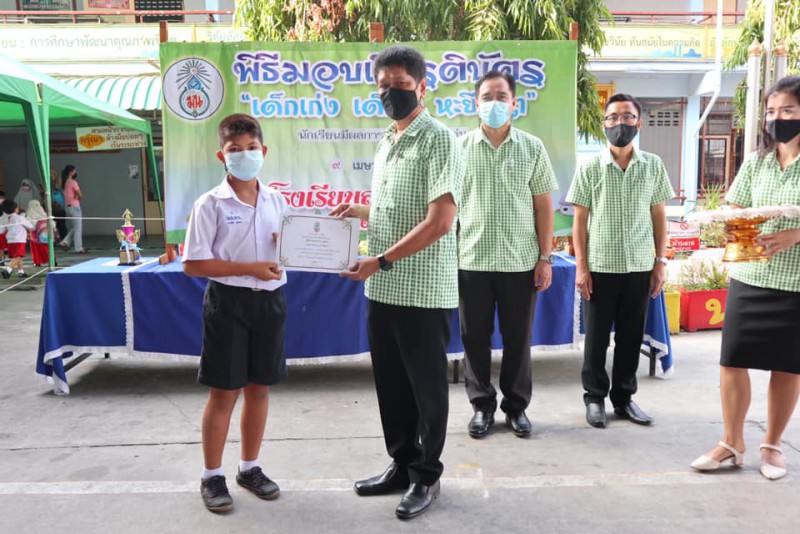 มอบเกียรติบัตรแก่นักเรียนที่ได้คะแนน 100 คะแนน ในระดับอนุบาล และนักเรียนที่ได้ระดับผลการเรียน 4.00 ในระดับชั้นประถมศึกษาปีที่ 1 - 6