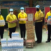 ทางตัวแทนที่ไปมอบของมีการป้องกันตามมาตรการป้องกันการแพร่ระบาดของโรคติดเชื้อโควิด-19 อย่างเคร่งครัด