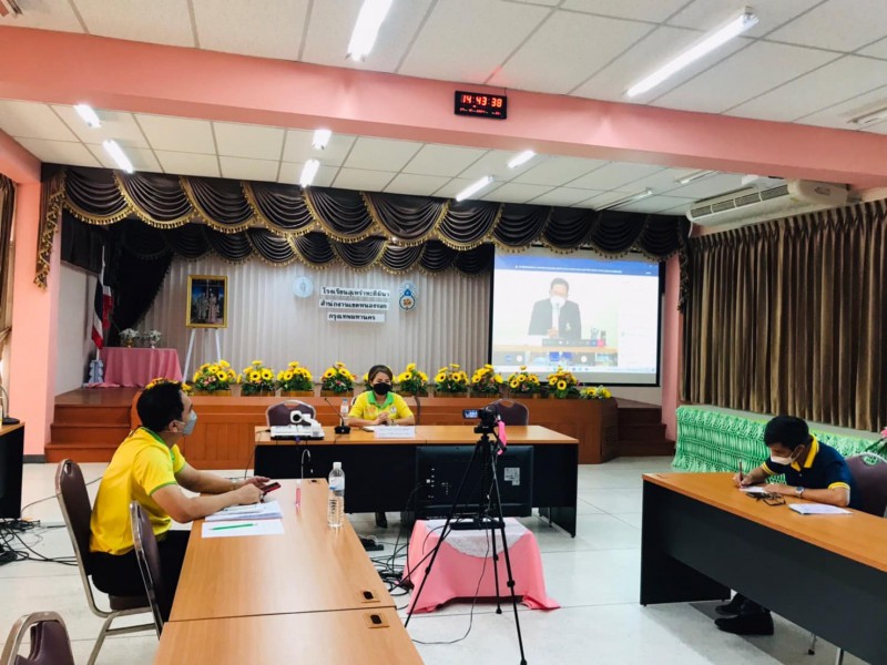การรับฟังการประชุมชี้แจงแนวทางการปฏิบัติงานนอกสถานที่ทำงานเพื่อรองรับสถานการณ์ การแพร่ระบาดของโรคติดเชื้อไวรัสโคโรนา 2019 การเลื่อนเปิดเรียน และการฉีดวัคซีนให้กับนักเรียน จากสำนักการศึกษา กรุงเทพมหานคร