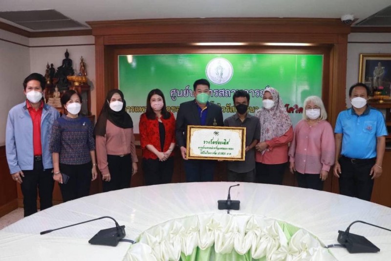 มอบโดย นายวุฒิภัทร คำประกอบ ผู้อำนวยการเขตหนองจอก นางธมญย์รัตน์ เจริญรัตน์ หัวหน้าฝ่ายการศึกษา และคณะกรรมการพิจารณาคัดเลือกคำขวัญเขตหนองจอก
