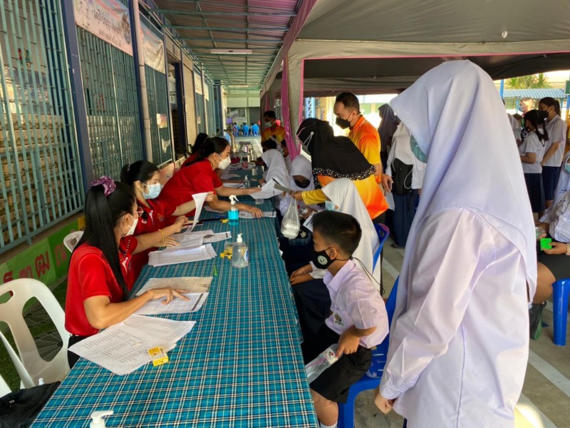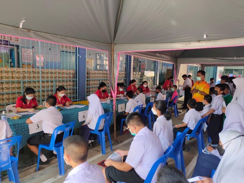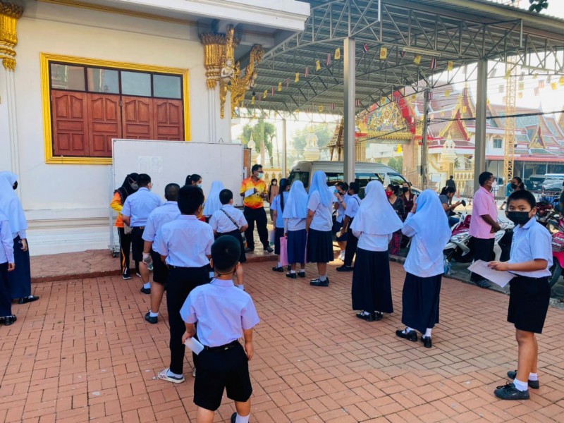 โรงเรียนสุเหร่าหะยีมินา โดย ผอ.วรรธนพร อรุณประเสริฐศรี นำนักเรียนที่มีอายุ 12-18 ปี เข้ารับการฉีดวัคซีนไฟเซอร์เข็มแรก เพื่อลดความรุนแรงของโรคติดเชื้อโควิด 19 ซึ่งมีคุณครูช่วยอำนวยความสะดวกและติดตามดูแล ณ โรงเรียนวัดหนองจอก (ภักดีนรเศรษฐ) วันที่ 25 มกราคม 2565 |