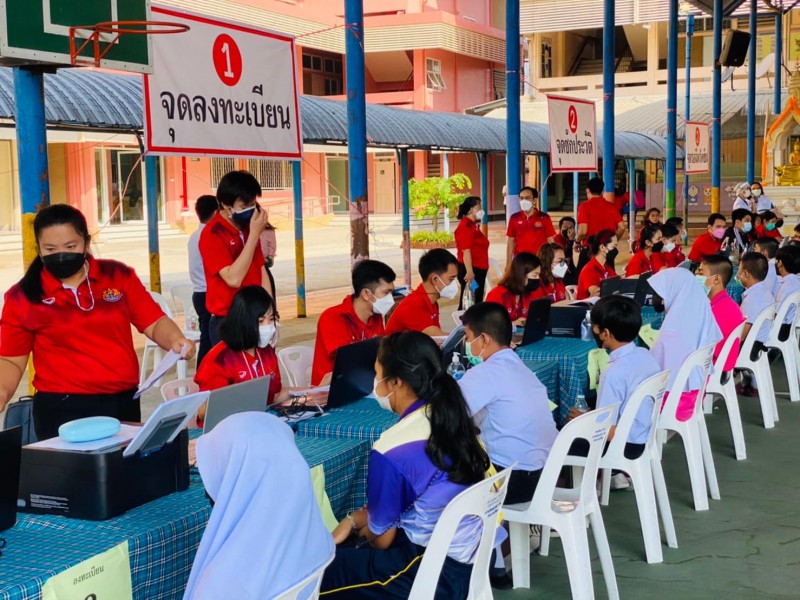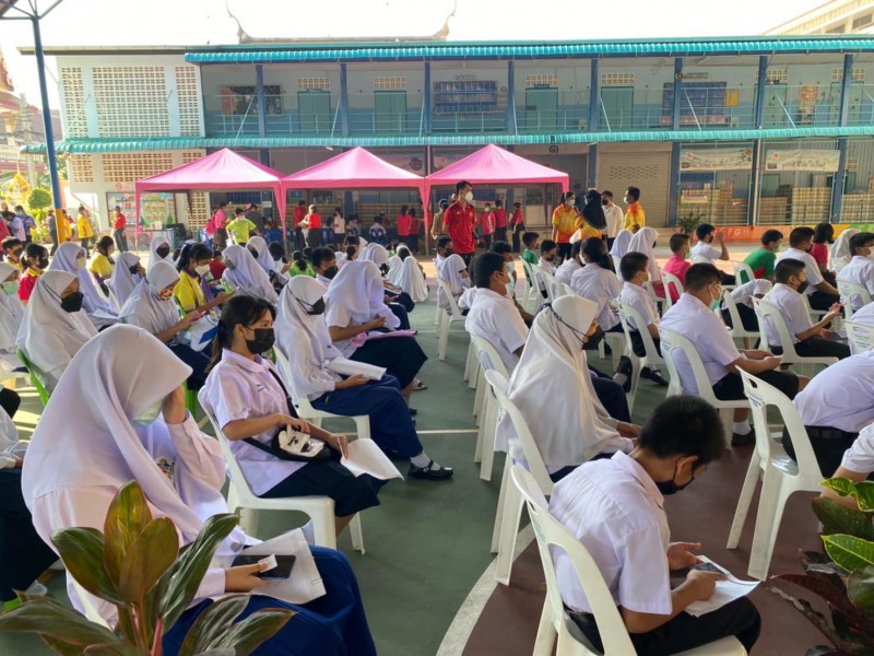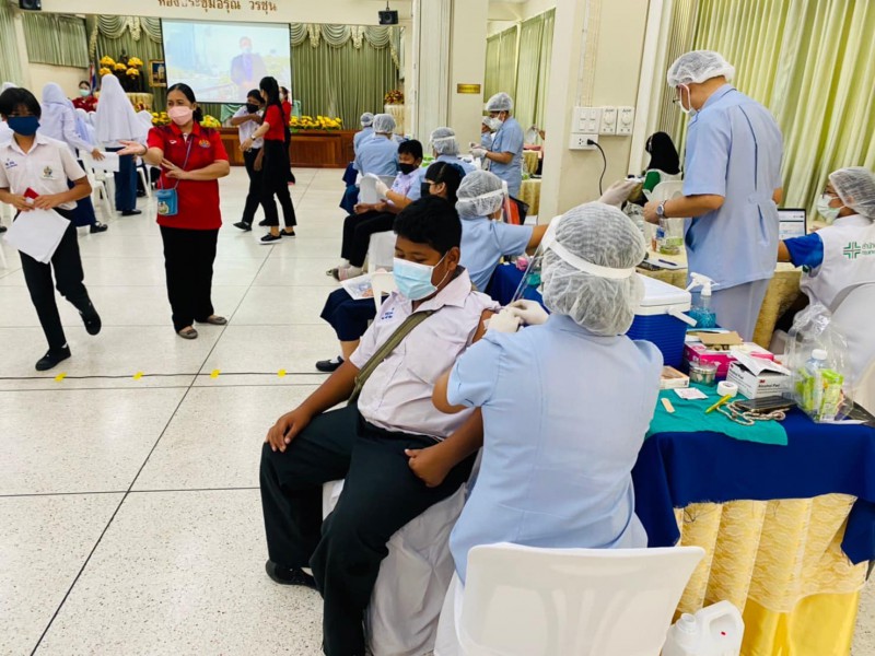 นักเรียนที่มีอายุ 12-18 ปี เข้ารับการฉีดวัคซีนไฟเซอร์เข็มแรก เพื่อลดความรุนแรงของโรคติดเชื้อโควิด 19