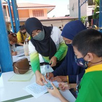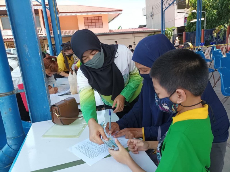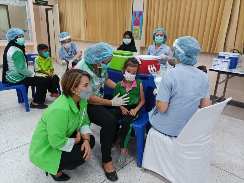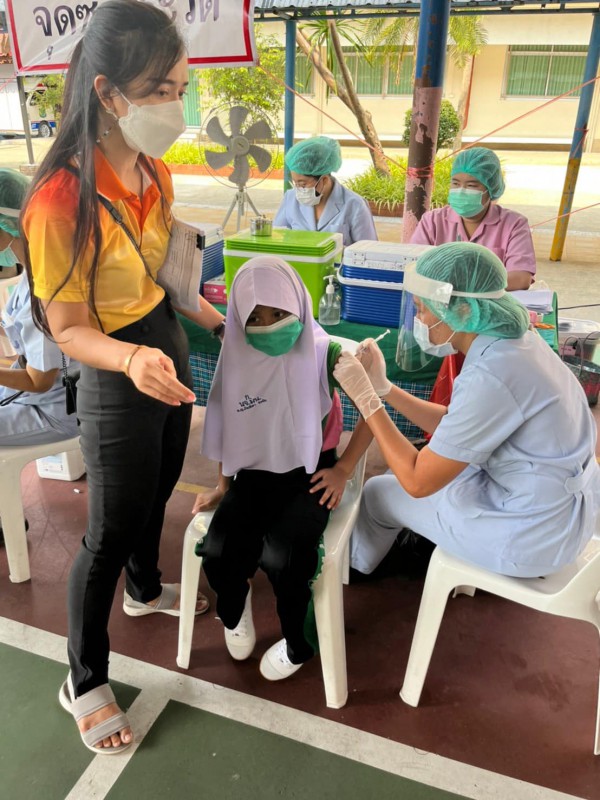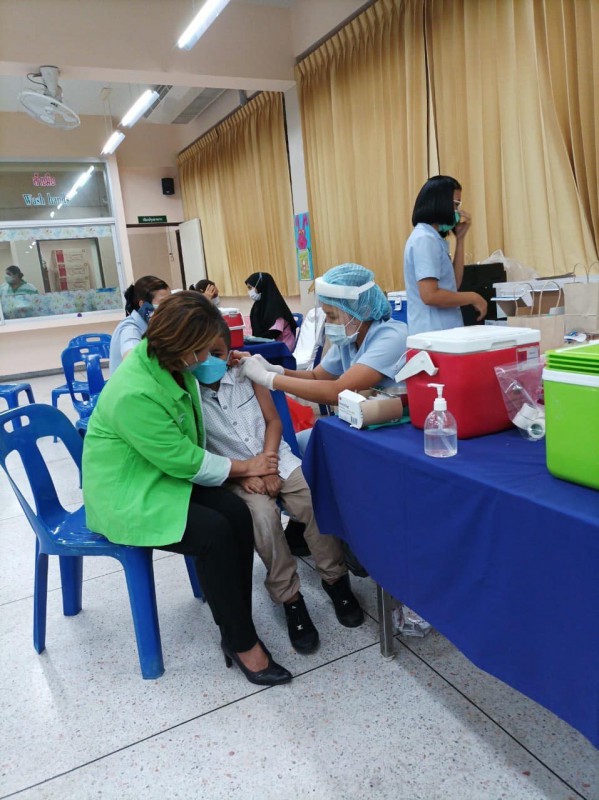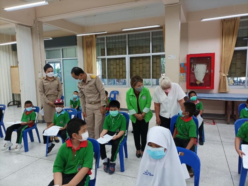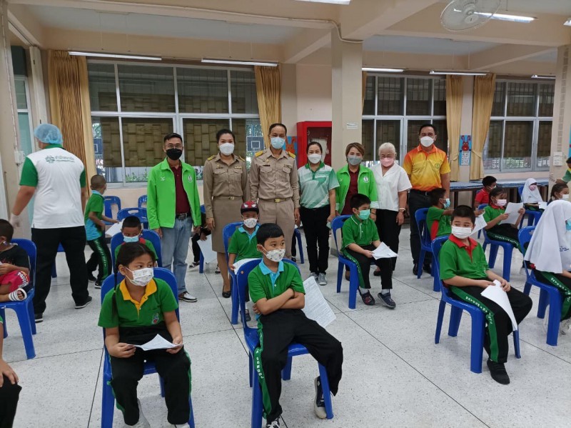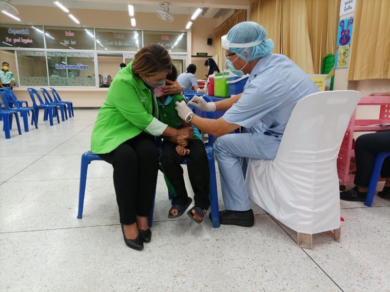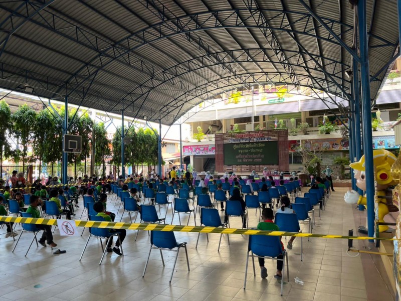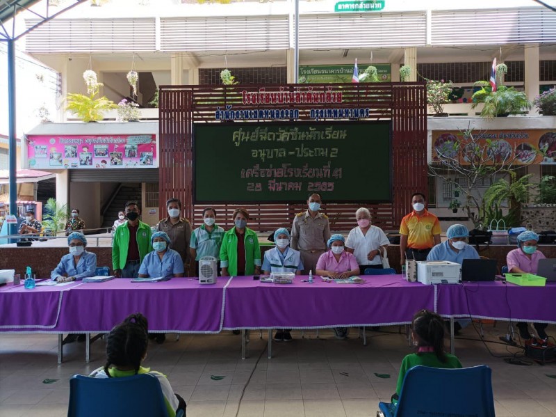 นักเรียนระดับชั้นอนุบาล - ชั้นประถมศึกษาปีที่ 2 เข้ารับวัคซีนเพื่อป้องการความรุนแรงจากโรคติดเชื้อโควิด ณ ศูนย์ฉีดวัคซีนนักเรียน เครือข่ายโรงเรียนที่ 41 โรงเรียนบ้านลำต้นกล้วย