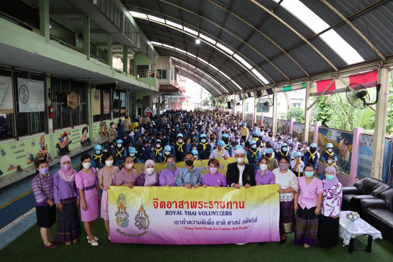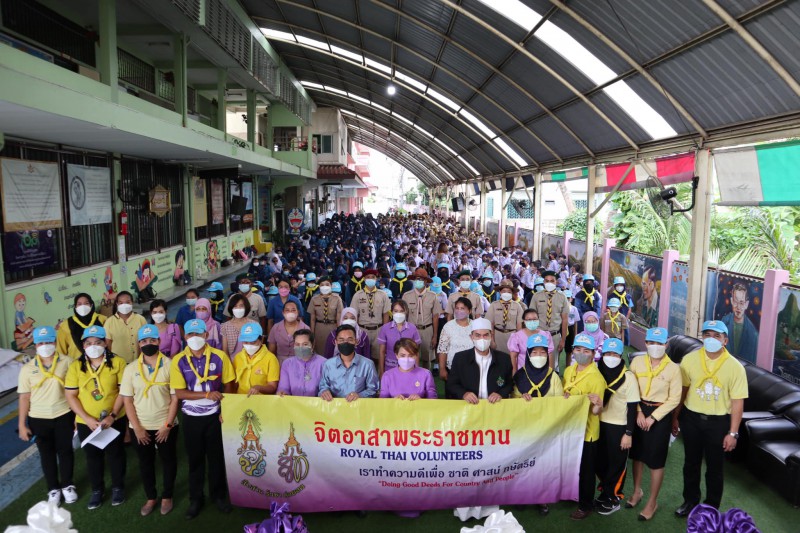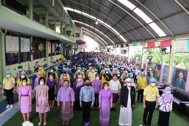 โดยมี นางวรรธนพร อรุณประเสริฐศรี ผู้อำนวยการสถานศึกษา ประธานในพิธีนำคณะผู้บริหาร ข้าราชการครู บุคลากร และนักเรียน เข้าร่วมพิธี จากนั้น ได้ร่วมกับสำนักงานเขตหนองจอก ทำกิจกรรมจิตอาสา บำเพ็ญประโยชน์ เพื่อถวายเป็นพระราชกุศล ภายใต้มาตรการการป้องกันการแพร่ระบาดของโรคติดเชื้อไวรัสโคโรนา 2019 (COVID-19) อย่างเคร่งครัด ณ โรงเรียนสุเหร่าหะยีมินา วันพฤหัสบดีที่ 2 มิถุนายน 2565