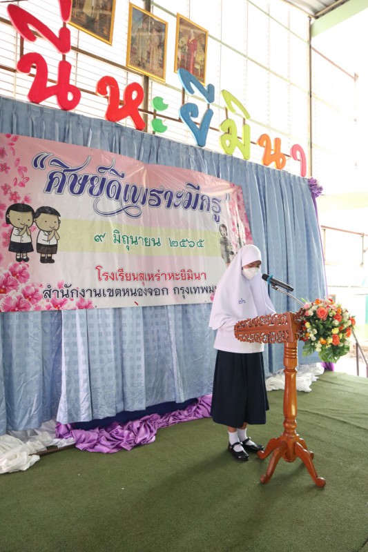 โรงเรียนสุเหร่าหะยีมินา โดย ผอ.วรรธนพร อรุณประเสริฐศรี จัดกิจกรรมขึ้นเพื่อให้ผู้เรียนได้แสดงความเคารพต่อครูบาอาจารย์ เนื่องจากครูเป็นบุคคลที่เราให้ความเคารพนับถือ เป็นผู้ถ่ายทอดวิชาความรู้ให้กับศิษย์ด้วยความรัก ความเมตตา และความปรารถนาดี ส่งผลให้ครูเป็นแรงผลักดันที่สำคัญของการพัฒนาสังคมและประเทศชาติ ณ โรงเรียนสุเหร่าหะยีมินา วันที่ 9 มิถุนายน 2565