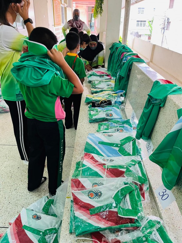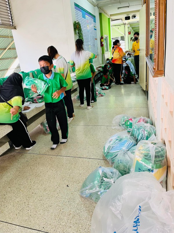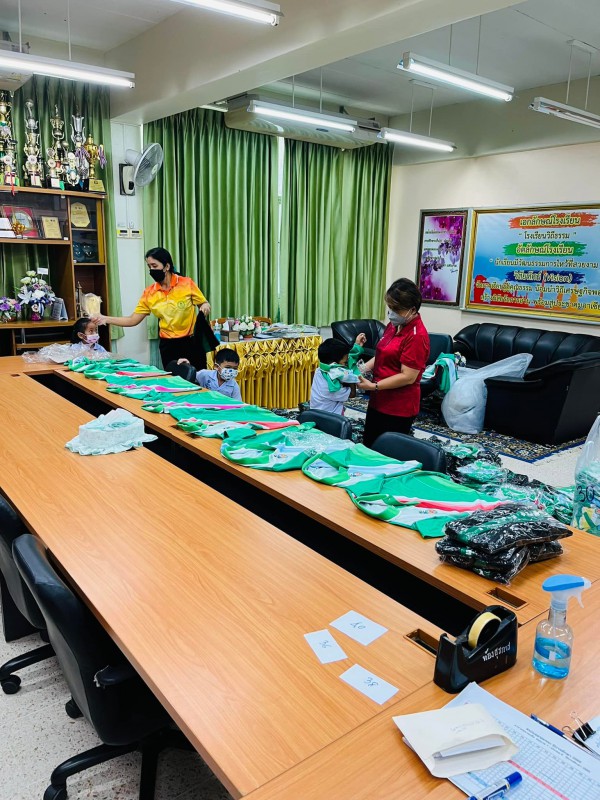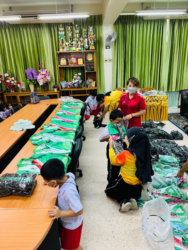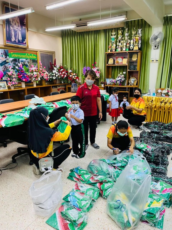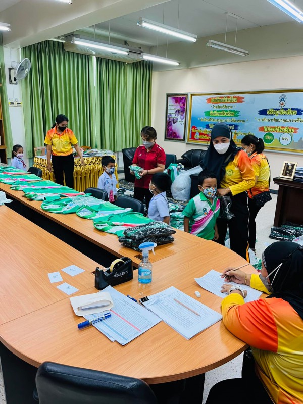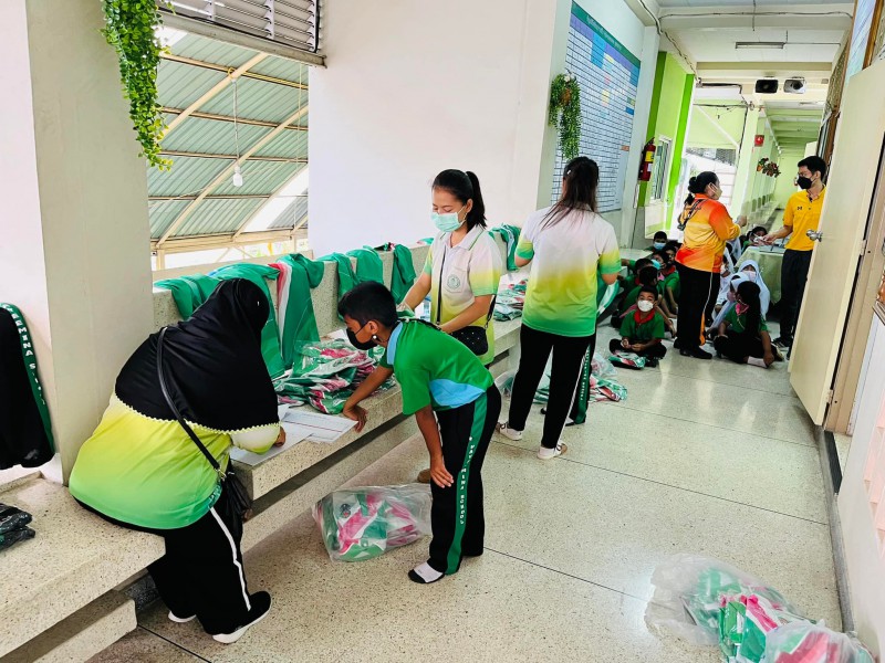 มอบเสื้อพละ และกางเกงพละ ปี65 ตามสี ให้กับนักเรียน ใช้ใส่วันสปอร์ทเดย์ กิจกรรมออกกำลังกายทุกวันพุธ