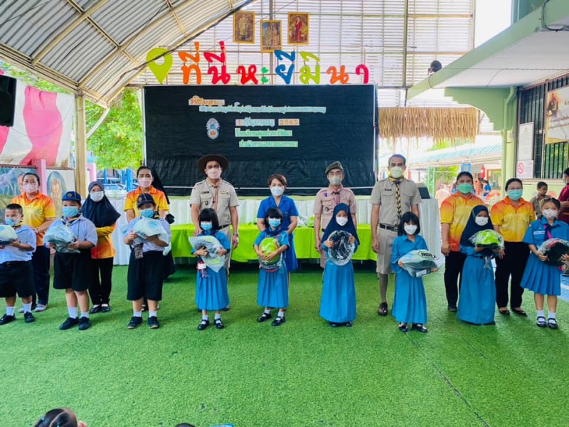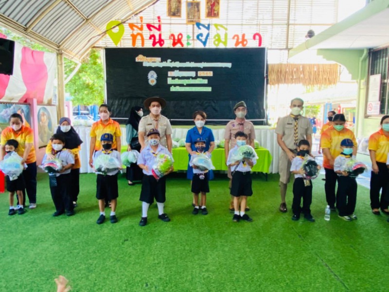 พิธีมอบหมวกนิรภัยโรงเรียนในสังกัดกรุงเทพมหานคร ให้กับนักเรียนโรงเรียนสุเหร่าหะยีมินาที่เดินทางมาโรงเรียนด้วยรถจักรยานยนต์และรถจักรยานยนต์สามล้อพ่วงข้าง ให้ใส่หมวกนิรภัย 100 %