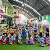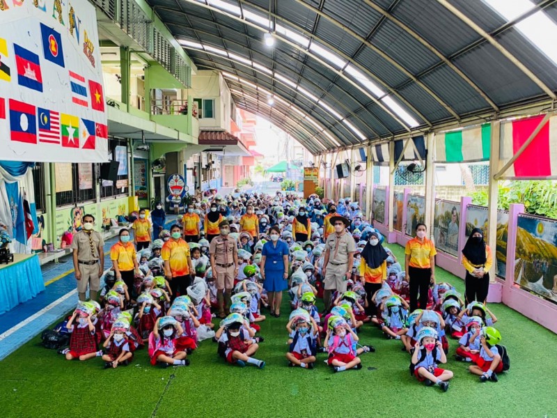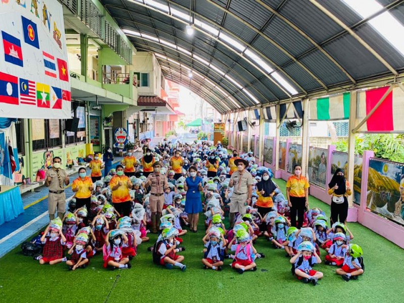 พิธีมอบหมวกนิรภัยโรงเรียนในสังกัดกรุงเทพมหานคร ให้กับนักเรียนโรงเรียนสุเหร่าหะยีมินาที่เดินทางมาโรงเรียนด้วยรถจักรยานยนต์และรถจักรยานยนต์สามล้อพ่วงข้าง ให้ใส่หมวกนิรภัย 100 %