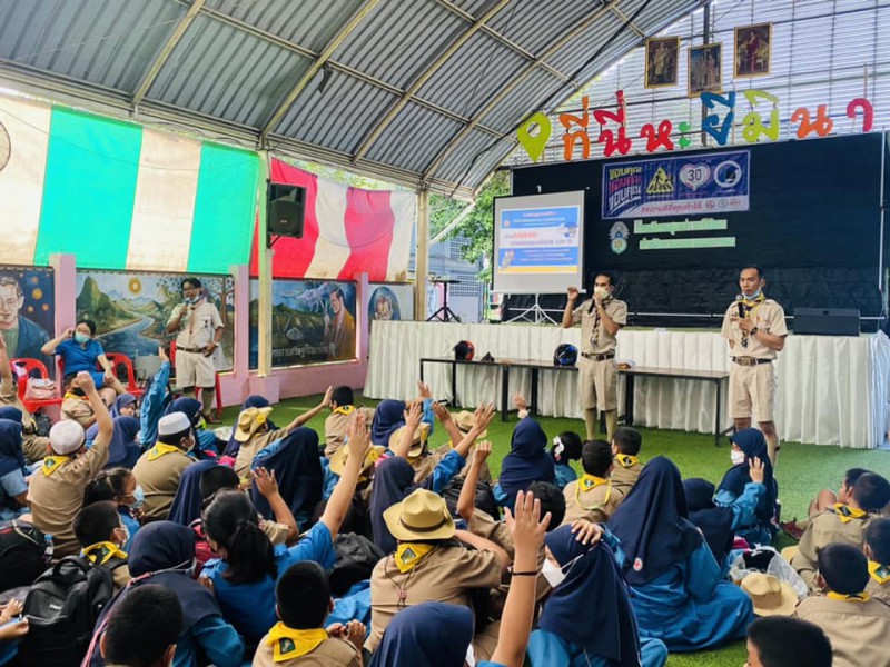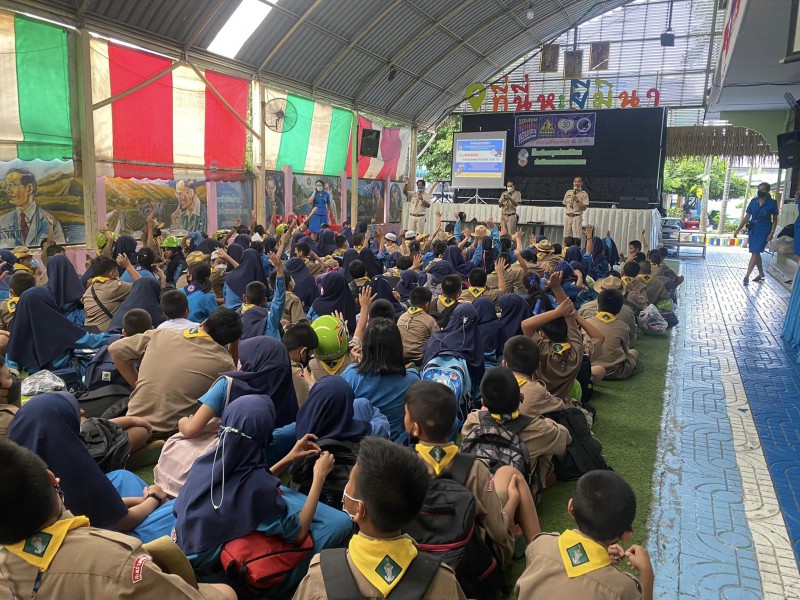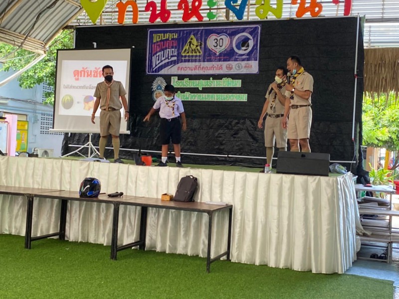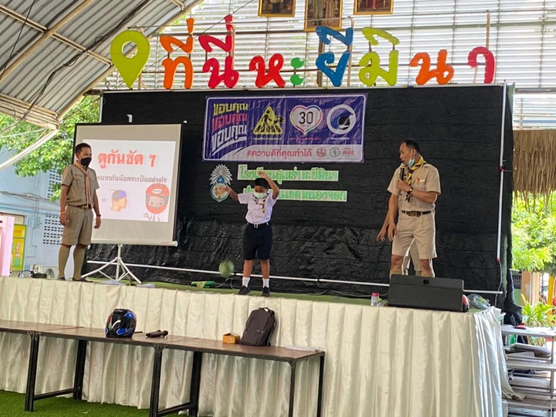 พิธีมอบหมวกนิรภัยโรงเรียนในสังกัดกรุงเทพมหานคร ให้กับนักเรียนโรงเรียนสุเหร่าหะยีมินาที่เดินทางมาโรงเรียนด้วยรถจักรยานยนต์และรถจักรยานยนต์สามล้อพ่วงข้าง ให้ใส่หมวกนิรภัย 100 %