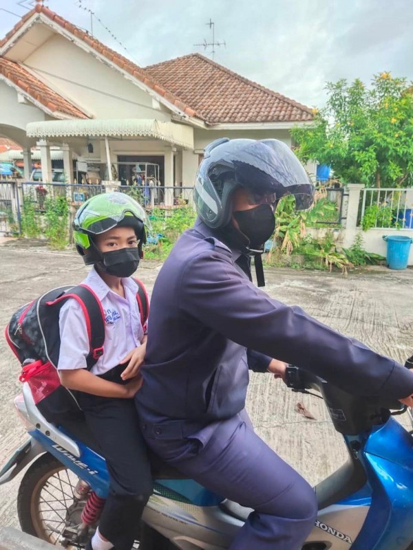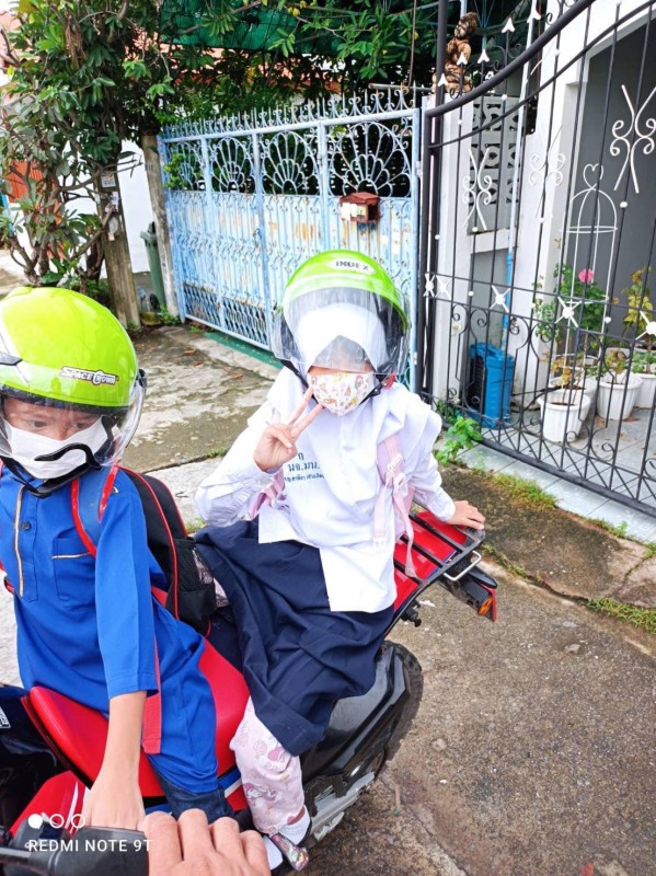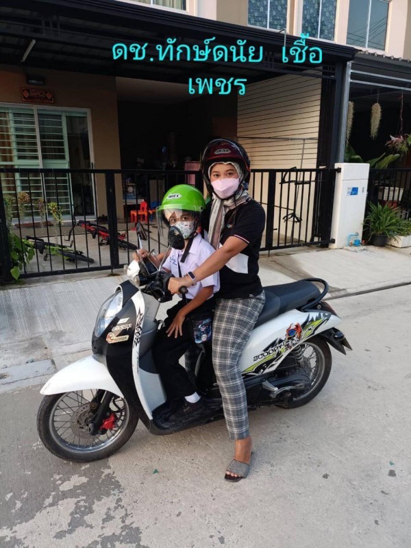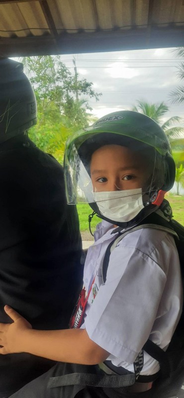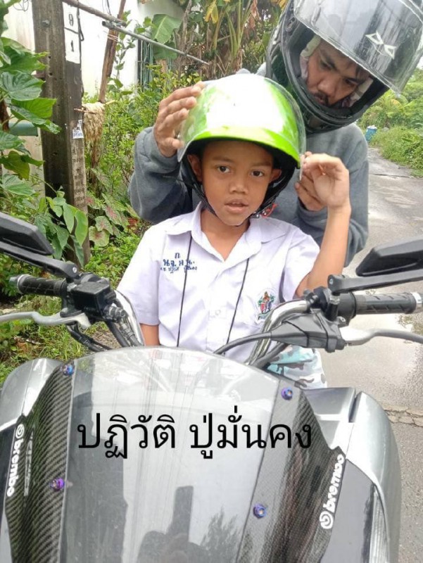 ร่วมรณรงค์ให้สวมหมวกนิรภัยในการเดินทาง 100 % เพื่อความปลอดภัยของชีวิตเมื่อประสบอุบัติเหตุ ตามกิจกรรมความปลอดภัยในโรงเรียน