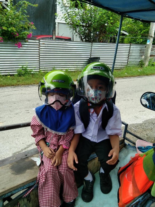 โรงเรียนสุเหร่าหะยีมินา โดย ผอ.วรรธนพร อรุณประเสริฐศรี ร่วมรณรงค์ให้สวมหมวกนิรภัยในการเดินทาง 100 % เพื่อความปลอดภัยของชีวิตเมื่อประสบอุบัติเหตุ ตามกิจกรรมความปลอดภัยในโรงเรียน