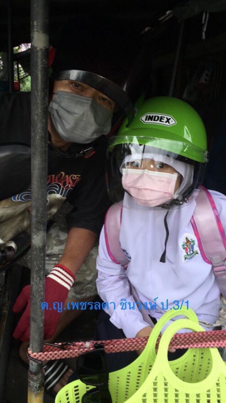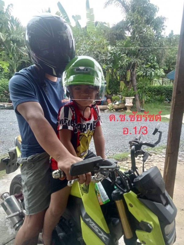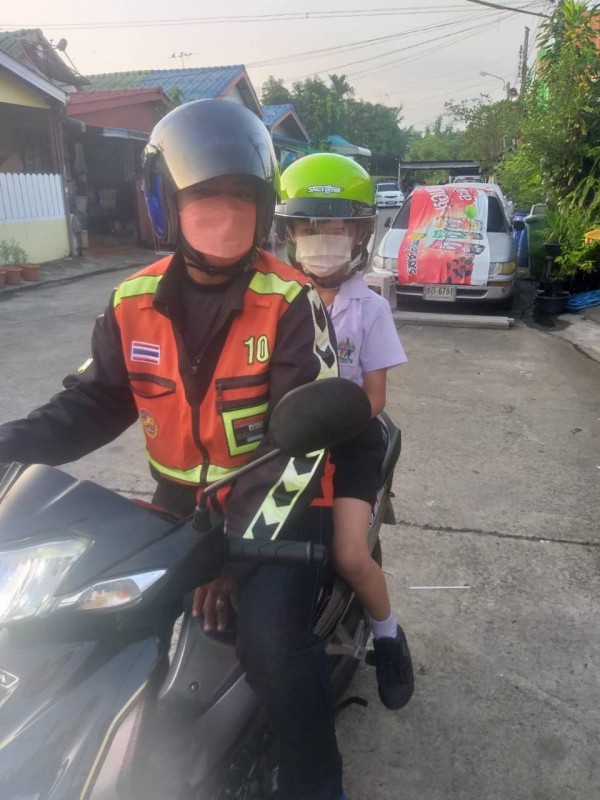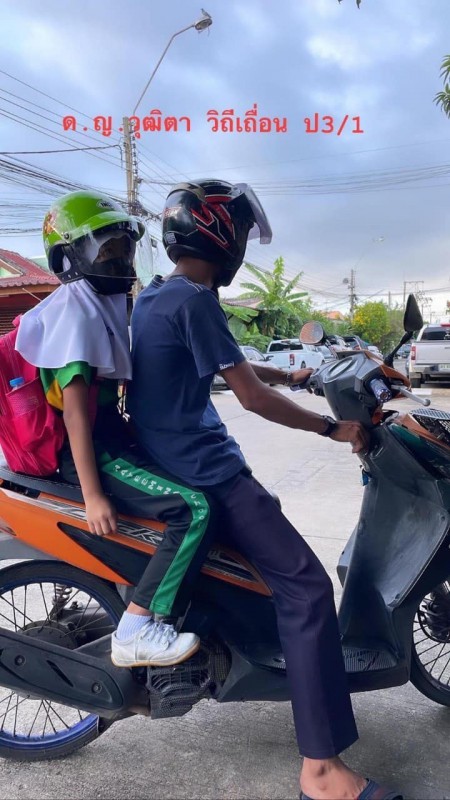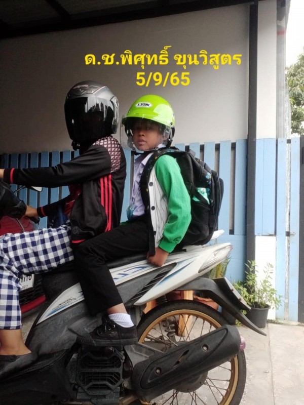 ร่วมรณรงค์ให้สวมหมวกนิรภัยในการเดินทาง 100 % เพื่อความปลอดภัยของชีวิตเมื่อประสบอุบัติเหตุ ตามกิจกรรมความปลอดภัยในโรงเรียน
