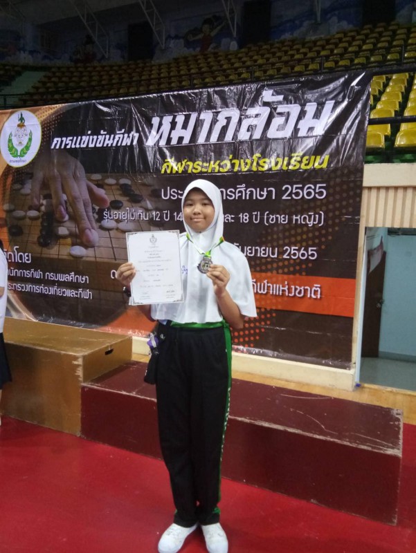 ขอแสดงความยินดีกับ เด็กหญิงศศิกานต์ บู่ทอง นักเรียนชั้นประถมศึกษาปีที่ 6 ได้รับรางวัลรองชนะเลิศ เหรียญเงิน กีฬาหมากล้อม ประเภทบุคคลหญิง รุ่นอายุไม่เกิน 12 ปี การแข่งขันกีฬาระหว่างโรงเรียน สำนักการกีฬา กรมพลศึกษา ประจำปี 2565