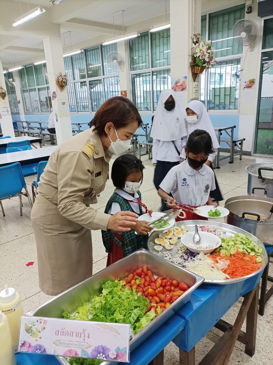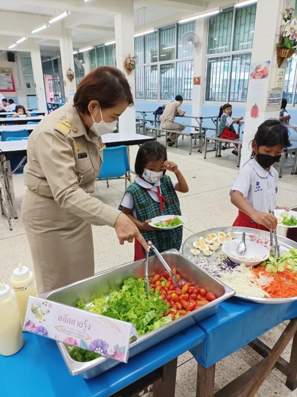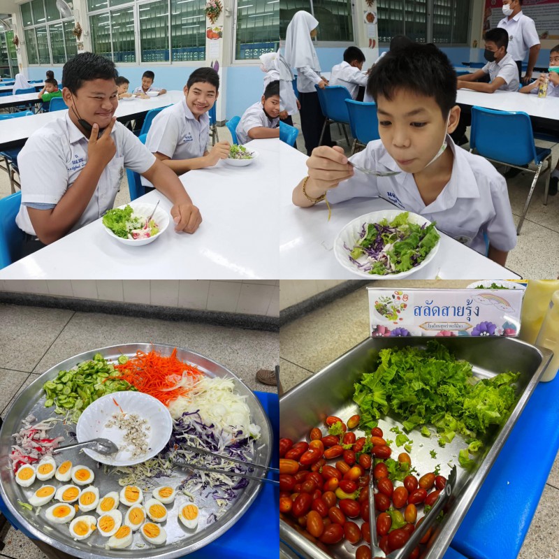 สลัดบาร์ สลัดสายรุ้ง โรงเรียนสุเหร่าหะยีมินา โดย ผอ.วรรธนพร อรุณประเสริฐศรี เป็นการฝึกให้นักเรียนรับประทานผักสลัดสัปดาห์ละ หนึ่งวันเสริมจากอาหารประจำวัน