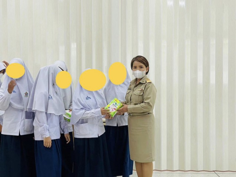 มอบผ้าอนามัยที่ได้รับการจัดสรรจากกรุงเทพมหานคร ให้นักเรียนหญิงที่จำเป็นต้องใช้ตามนโยบายของผู้ว่า กทม.