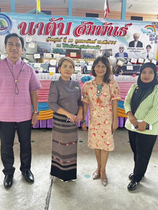 นางวรรธนพร อรุณประเสริฐศรี ผอ.โรงเรียนสุเหร่าหะยีมินา รองผู้อำนวยการ และตัวแทนครูร่วมให้กำลังใจในงานโรงเรียนสุเหร่านาตับ และโรงเรียนสุเหร่าสนามกลางลำ |