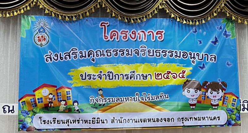 โรงเรียนสุเหร่าหะยีมินา โดยนางวรรธนพร อรุณประเสริฐศรี เปิดโครงการส่งเสริมคุณธรรม จริยธรรมอนุบาล กิจกรรมลมหายใจไร้มลทิน ส่งเสริมให้น้องๆอนุบาล มีกิจกรรมที่สนุกสนาน แทรกความรู้คุณธรรมต่าง มีการประกวดไหว้สวย การเล่านิทานคุณธรรม การแสดงละคร การเต้นประกอบเพลง น้อง ๆ อนุบาลได้รับความสนุก ปลูกฝังคุณธรรมที่ดี และได้รับรางวัล |