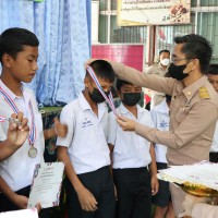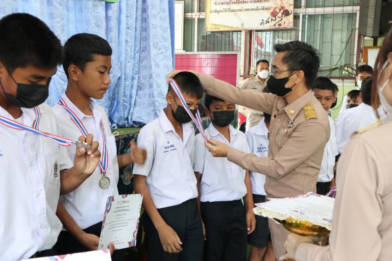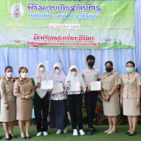 นางวรรธนพร อรุณประเสริฐศรี มอบเกียรติบัตร รางวัลการแข่งขันทางวิชาการ ในการไปแข่งขันที่โรงเรียนสวนกุหลาบวิทยาลัย ได้รางวัลชนะเลิศการขับเสภา ชนะเลิศฟุตบอลชาย รองชนะเลิศอันดับหนึ่งประเภทแดนเซอร์ แข่งอาหารจานเดียวทีมชาย ที่3 ผอ.กล่าวขื่นชมนักเรียนและครู และให้กำลังใจในการจัดการสอนต่อไป |