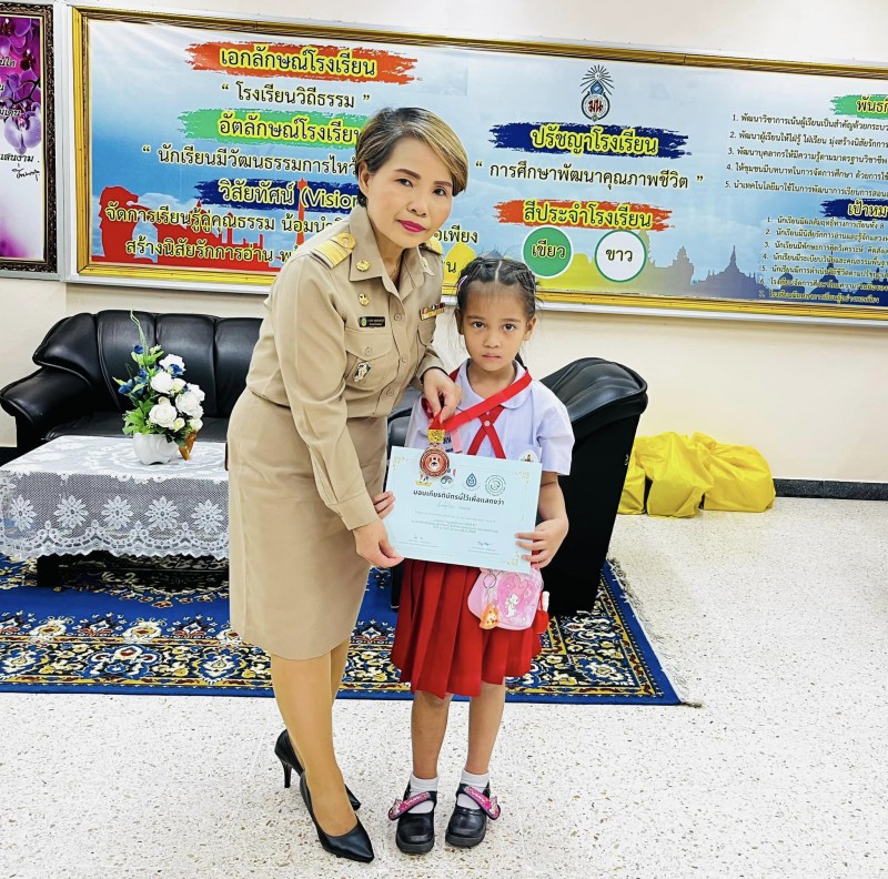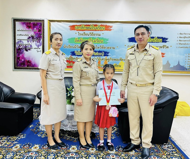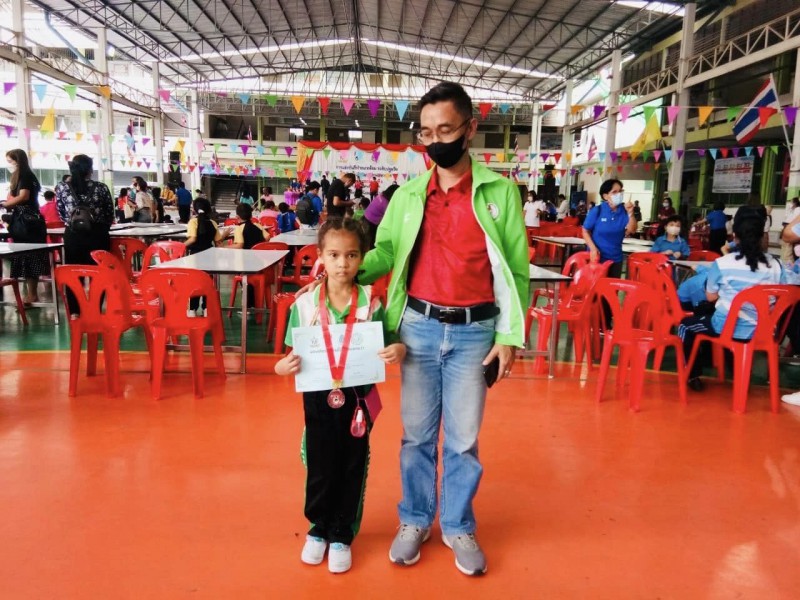 แสดงความยินดีกับเด็กหญิง วีรยา อ่อนเกษร กับรางวัลเหรียญทองแดง ในการแข่งขันกีฬาหมากล้อม อนุบาลครั้งที่ 4
