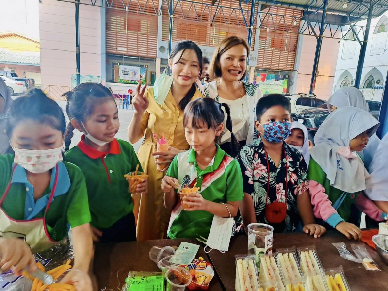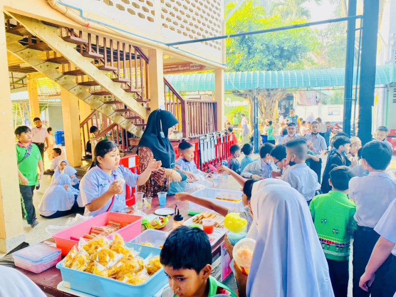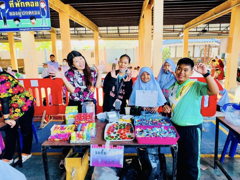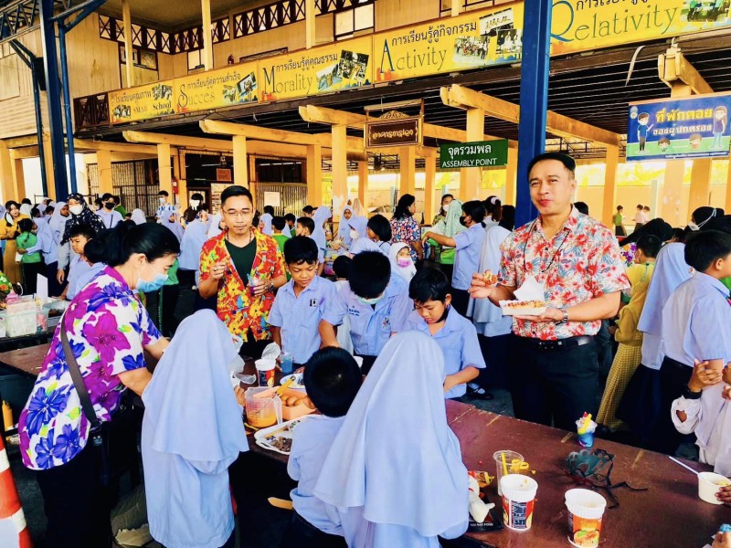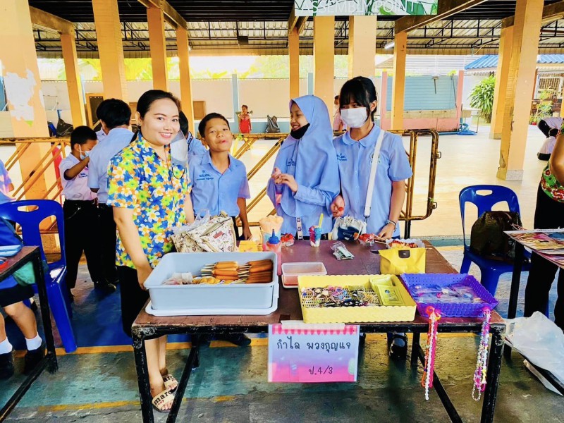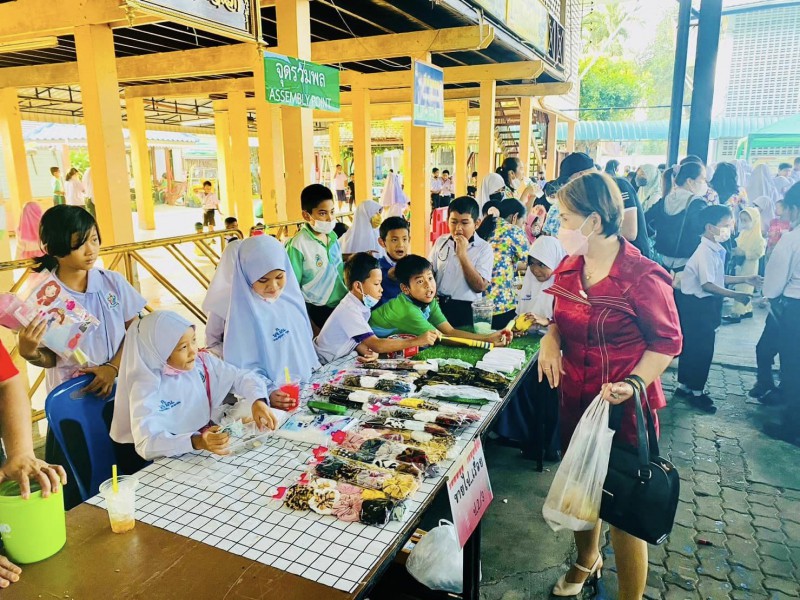 ผอ.วรรธนพร อรุณประเสริฐศรี และรองผู้อำนวยการทั้งสอง เข้าเยี่ยมกิจกรรมตลาดนัดพอเพียง วันที่24 ก.พ.66 ที่ต้องขยายออกมาด้านนอก เนื่องจากร้านค้าจากห้องเรียนมาเพิ่ม พ่อค้าแม่ค้าน้อยๆ เรียกลูกค้ากันอย่างตั้งใจ |