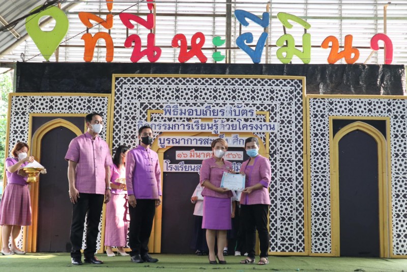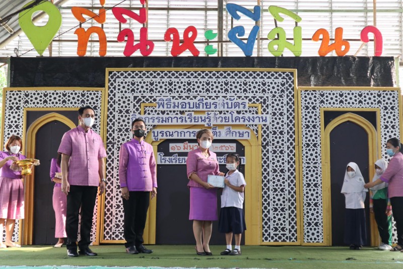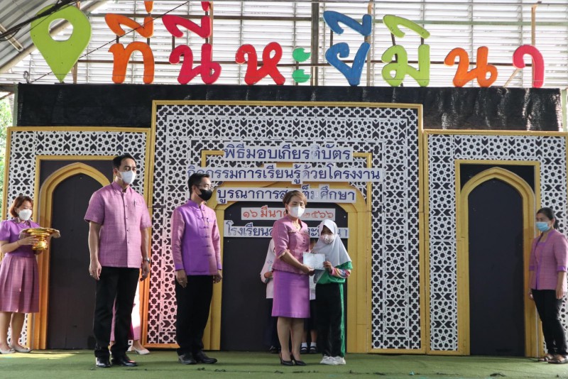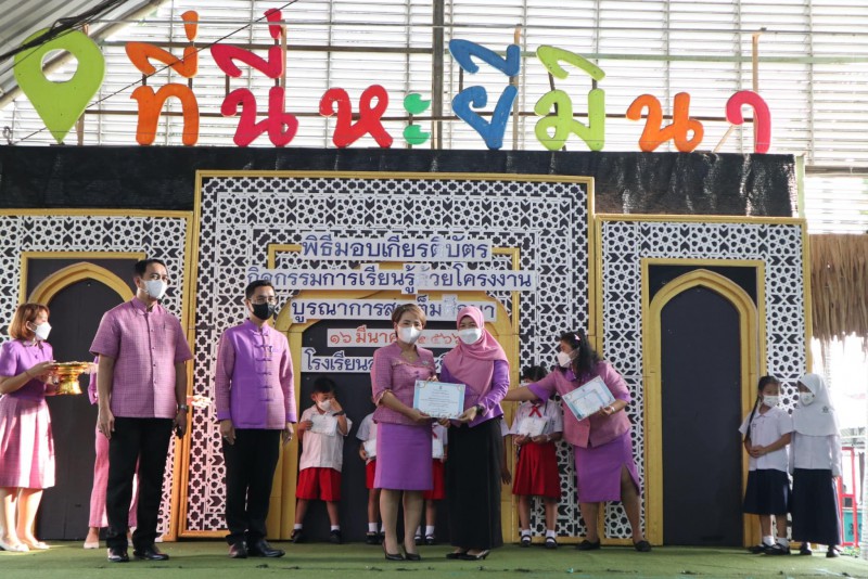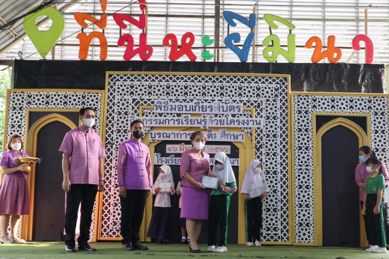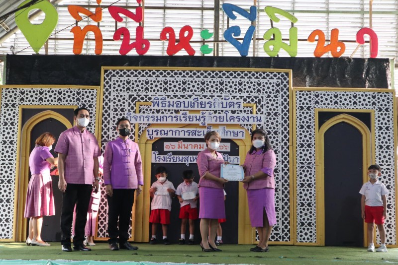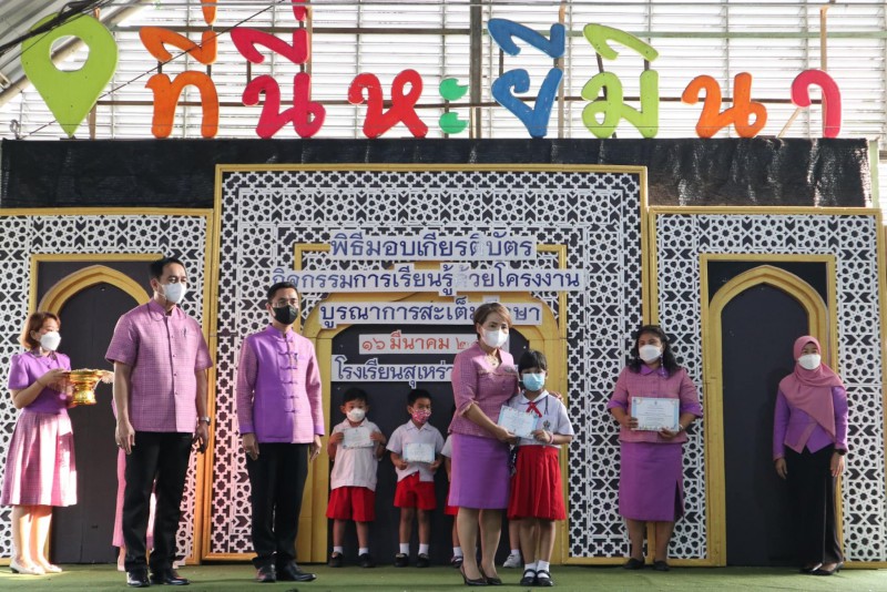 โรงเรียนสุเหร่าหะยีมินา โดย ผอ.วรรธนพร อรุณประเสริฐศรี มอบเกียรติบัตรให้แก่นักเรียนและครูที่ปรึกษาที่ชนะเลิศการแข่งขัน โครงงาน ในโครงการการจัดการเรียนรู้ด้วยโครงงาน บูรณาการสะเต็มศึกษา ประจำปีการศึกษา 2565 ณ โรงเรียนสุเหร่าหะยีมินา วันที่ 16 มีนาคม 2565 |