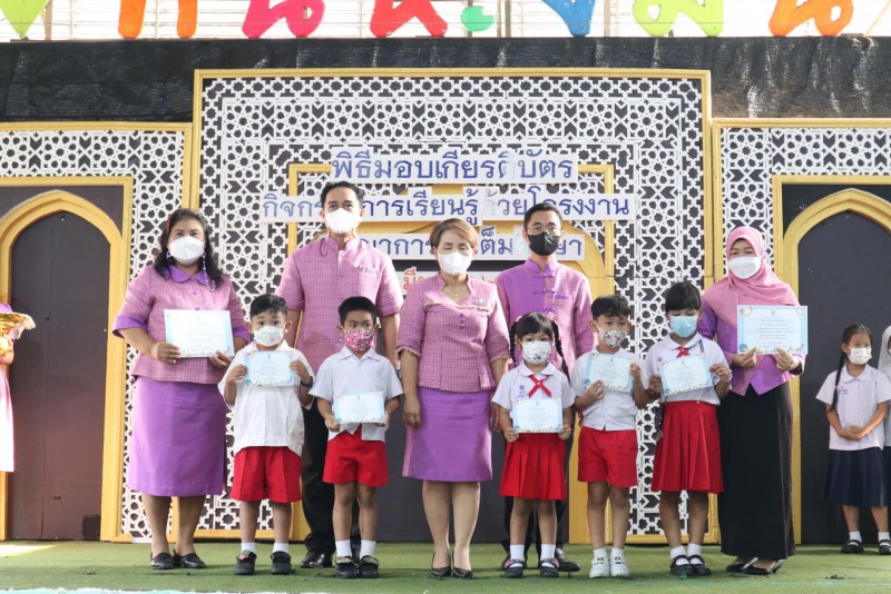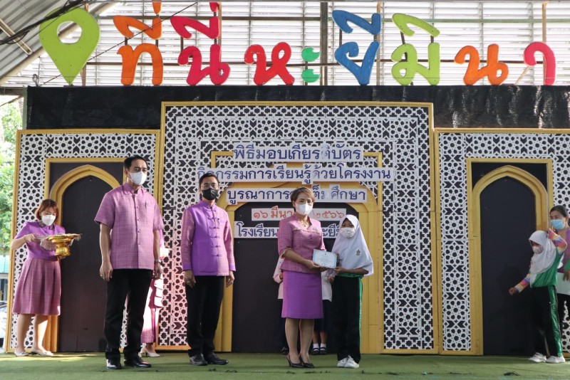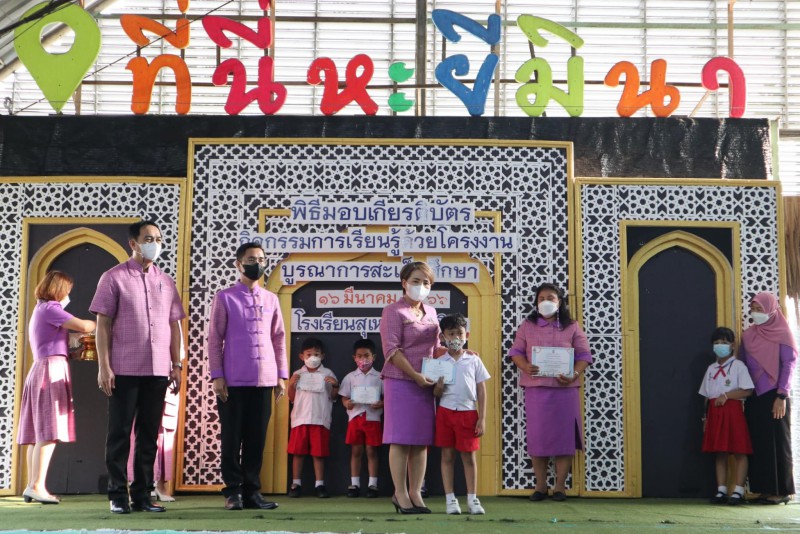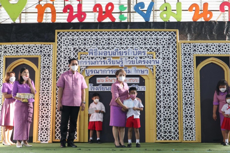 มอบเกียรติบัตรให้แก่นักเรียนและครูที่ปรึกษาที่ชนะเลิศการแข่งขัน โครงงาน ในโครงการการจัดการเรียนรู้ด้วยโครงงาน บูรณาการสะเต็มศึกษา ประจำปีการศึกษา 2565