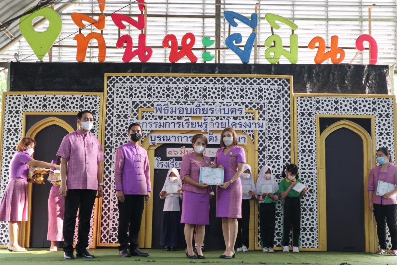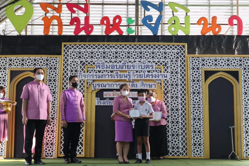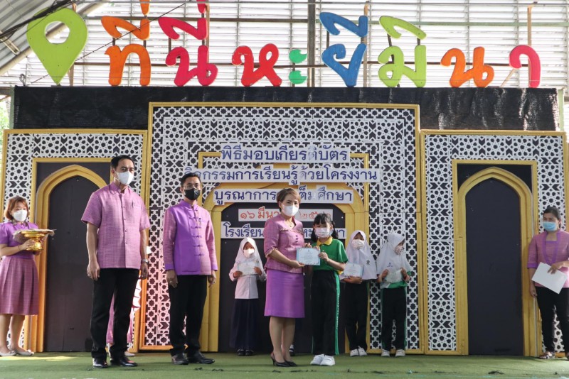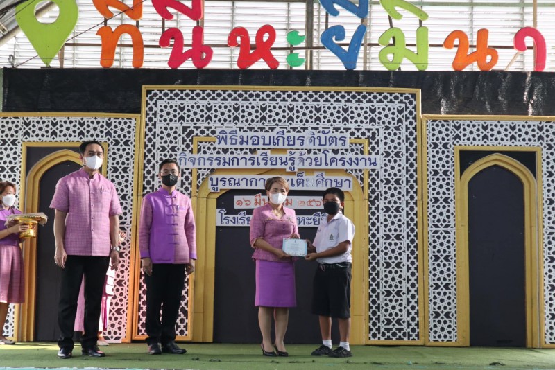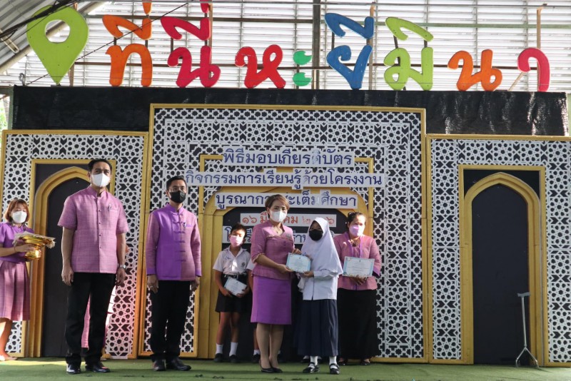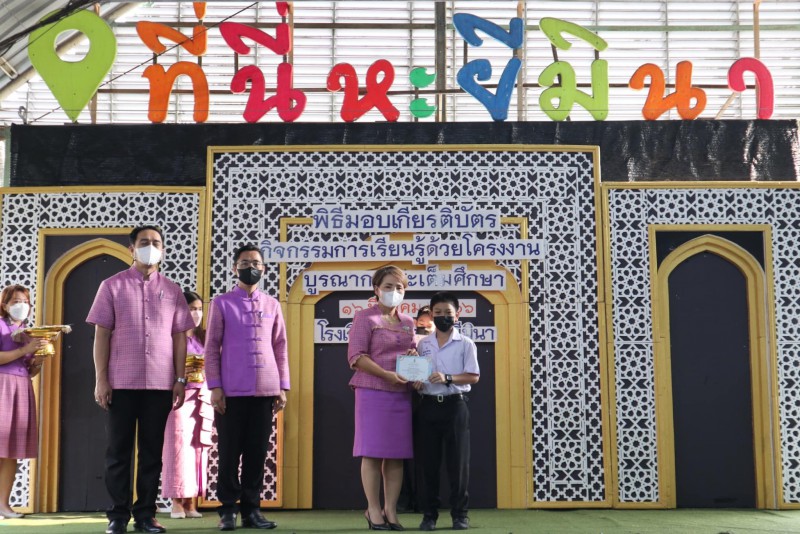 โรงเรียนสุเหร่าหะยีมินา โดย ผอ.วรรธนพร อรุณประเสริฐศรี มอบเกียรติบัตรให้แก่นักเรียนและครูที่ปรึกษาที่ชนะเลิศการแข่งขัน โครงงาน ในโครงการการจัดการเรียนรู้ด้วยโครงงาน บูรณาการสะเต็มศึกษา ประจำปีการศึกษา 2565 ณ โรงเรียนสุเหร่าหะยีมินา วันที่ 16 มีนาคม 2565 |