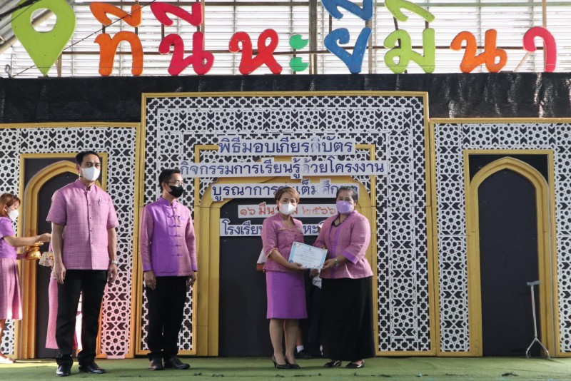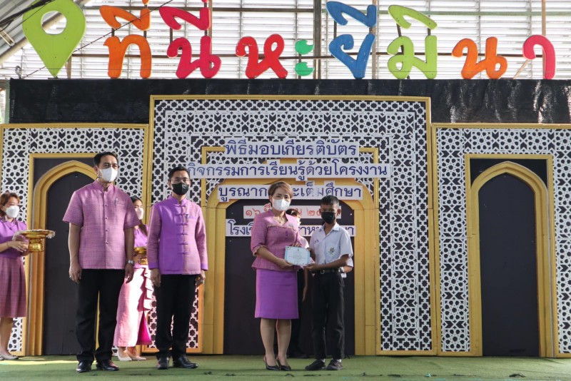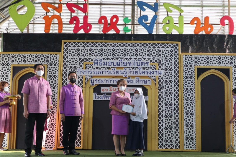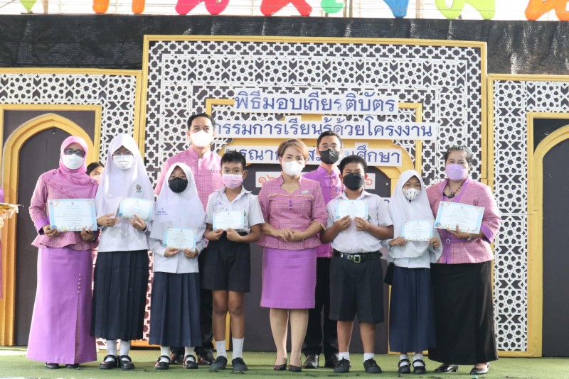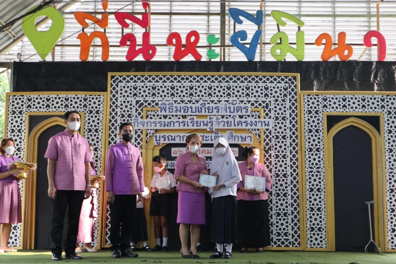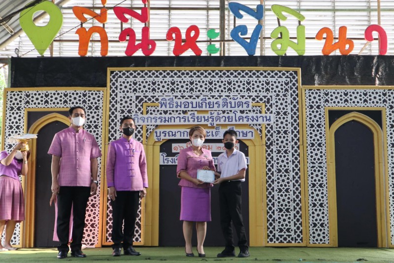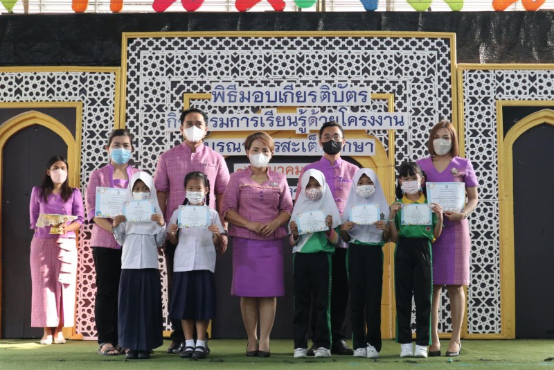 มอบเกียรติบัตรให้แก่นักเรียนและครูที่ปรึกษาที่ชนะเลิศการแข่งขัน โครงงาน ในโครงการการจัดการเรียนรู้ด้วยโครงงาน บูรณาการสะเต็มศึกษา ประจำปีการศึกษา 2565