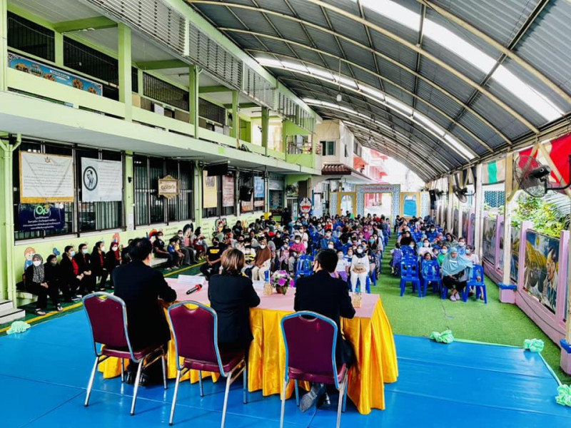 นางวรรธนพร อรุณประเสริฐศรี ผู้อำนวยการโรงเรียนสุเหร่าหะยีมินา พูดชี้แจงนโยบายและขอความร่วมมือจากผู้ปกครอง นักเรียนอนุบาล1 ปีการศึกษา 2566 ในการมอบตัวจำนวนนักเรียนจำนวน 115 คน และวัดขนาดชุดพละ โดยผู้ปกครองให้ความร่วมมือเป็นอย่างดี วันที่26 มีนาคม 2566 |