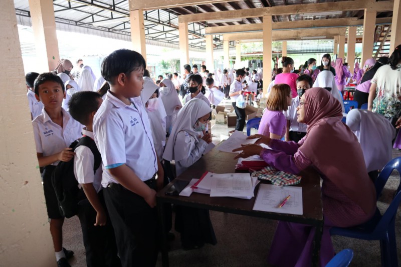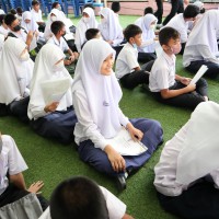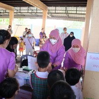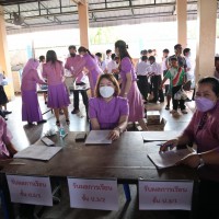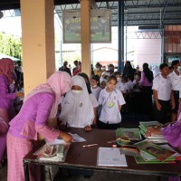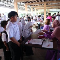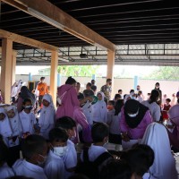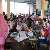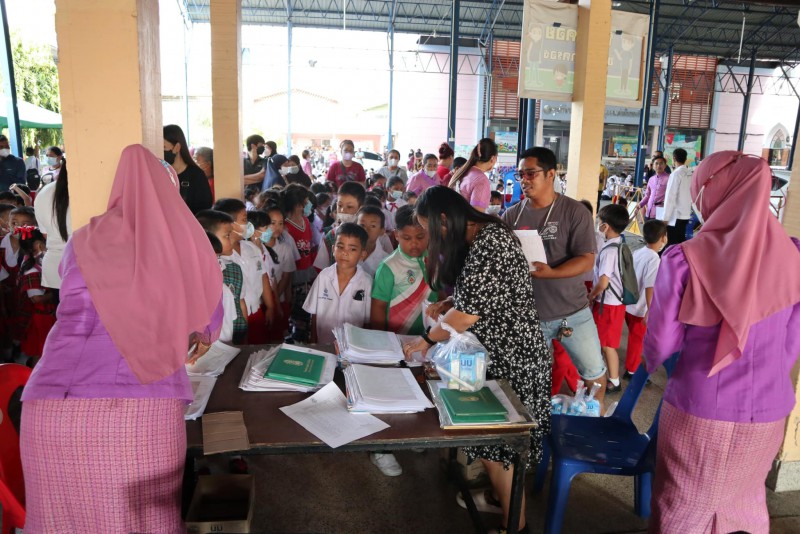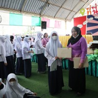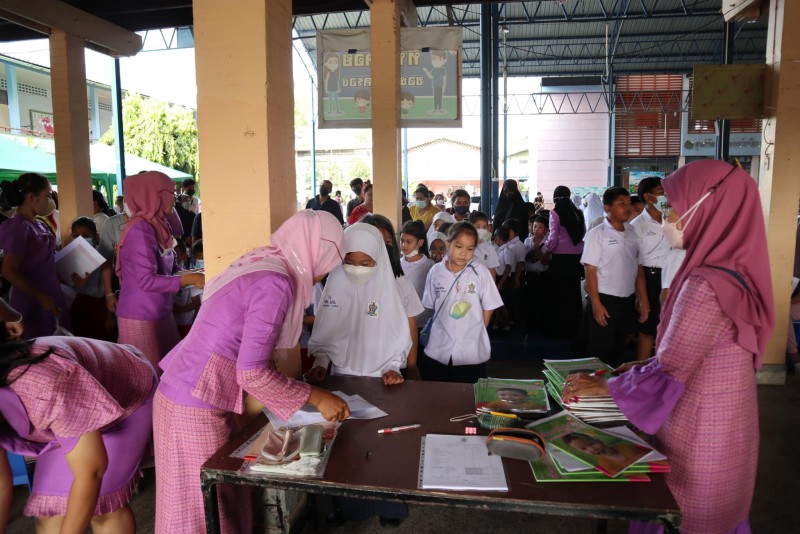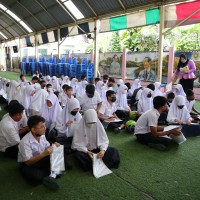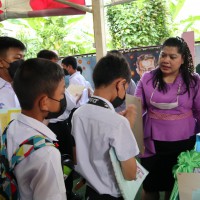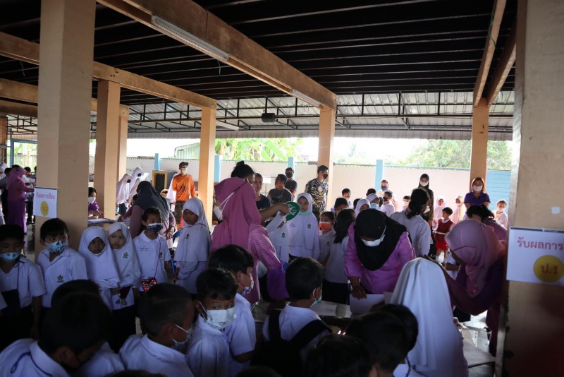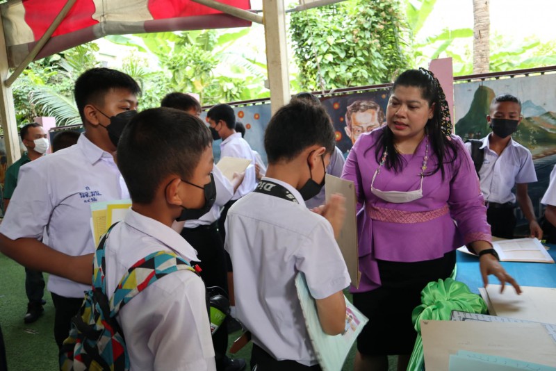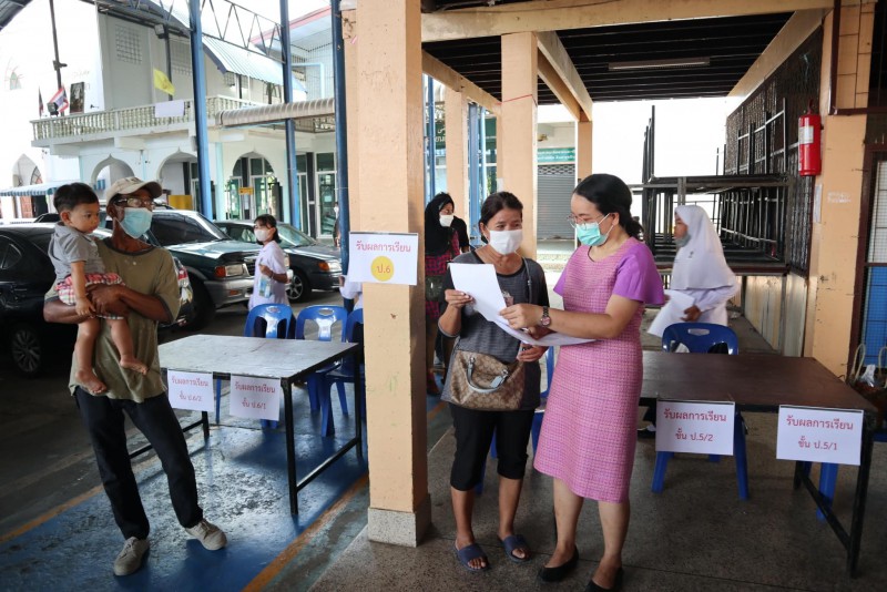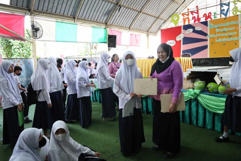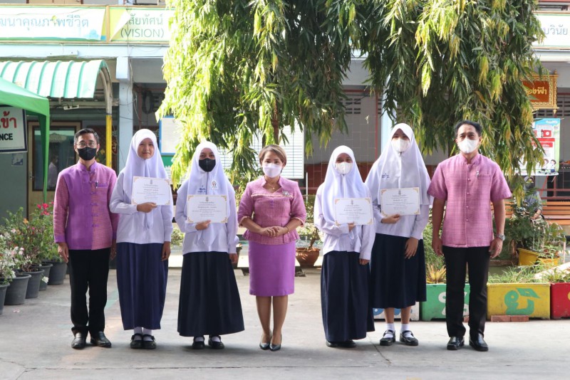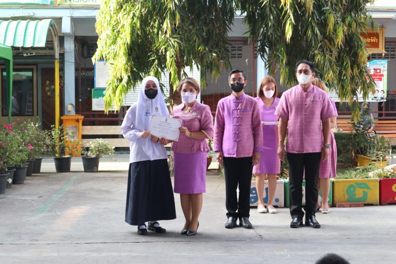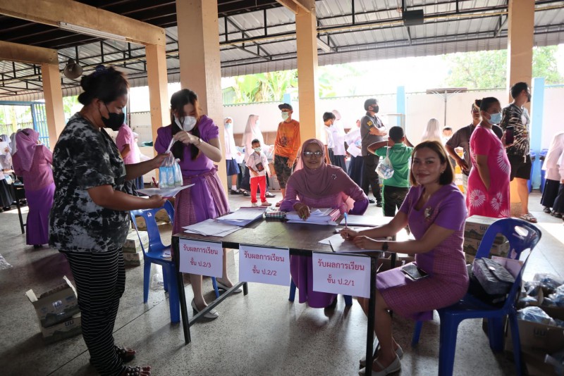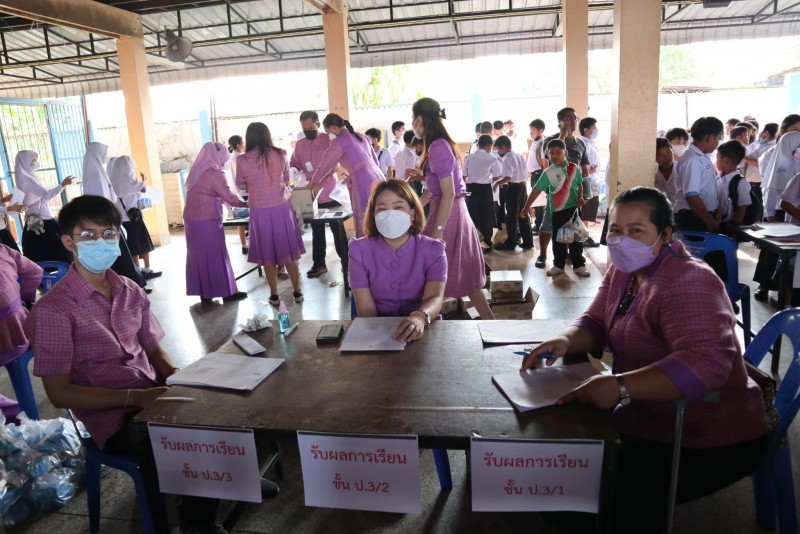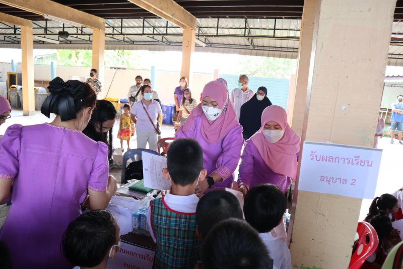 แจกใบรายงานผลการเรียนให้แก่นักเรียนระดับชั้นอนุบาลและประถมศึกษา พร้อมกับมอบเกียรติบัตรให้แก่นักเรียนระดับชั้นประถมศึกษาปีที่ 6 ที่มีผลการเรียนอยู่ในระดับ 4.00
