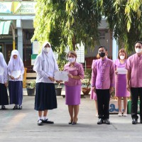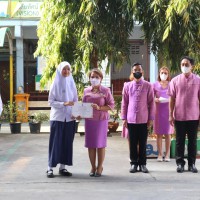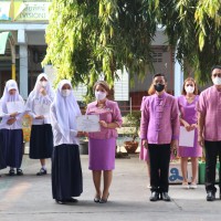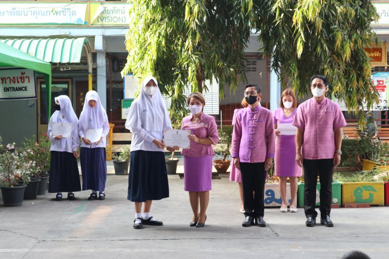 แจกใบรายงานผลการเรียนให้แก่นักเรียนระดับชั้นอนุบาลและประถมศึกษา พร้อมกับมอบเกียรติบัตรให้แก่นักเรียนระดับชั้นประถมศึกษาปีที่ 6 ที่มีผลการเรียนอยู่ในระดับ 4.00