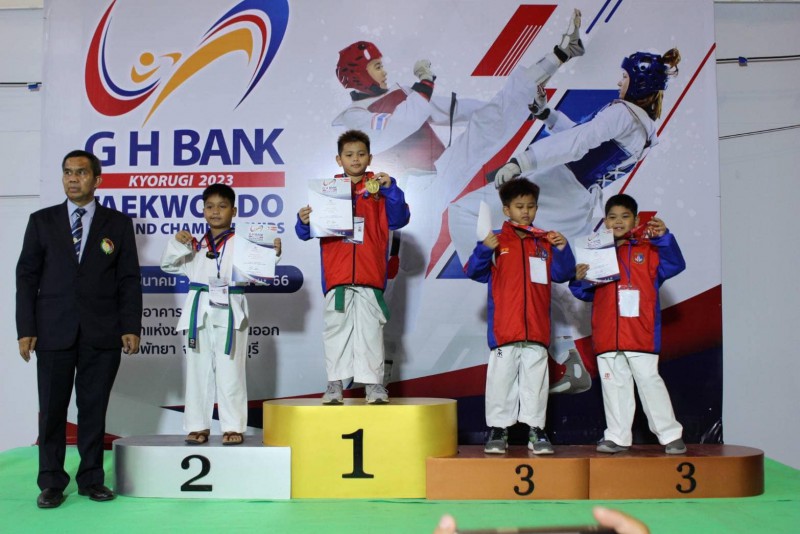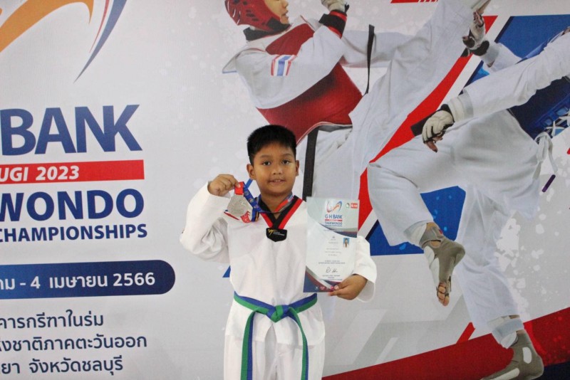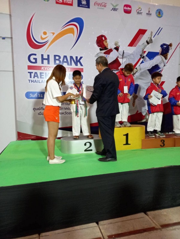 ขอแสดงความยินดีแก่ เด็กชายธราเทพ เจ๊ะเต๊ะ นักเรียนชั้นประถมศึกษาปีที่ 2/1 ได้รับรางวัลเหรียญเงิน การแข่งขัน G H Bank เทควันโด ชิงชนะเลิศแห่งประเทศไทย