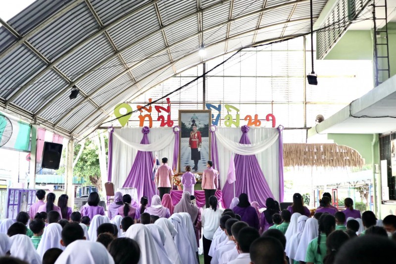 โรงเรียนสุเหร่าหะยีมินา โดย ผอ.วรรธนพร อรุณประเสริฐศรี ผู้อำนวยการสถานศึกษา นำผู้บริหาร ครู บุคลากร และนักเรียน จัดพิธีถวายพระพร และลงนามถวายพระพร เนื่องในวันเฉลิมพระชนมพรรษาสมเด็จพระนางเจ้าสุทิดา พัชรสุธาพิมลลักษณ พระบรมราชินี และมีการทำกิจกรรมจิตอาสา ร่วมกับอาสาสมัครพยัคย์ดำหนองจอก ล้างทำความสะอาดพื้นลานสนาม ณ โรงเรียนสุเหร่าหะยีมินา วันที่ 2 มิถุนายน 2566 |
