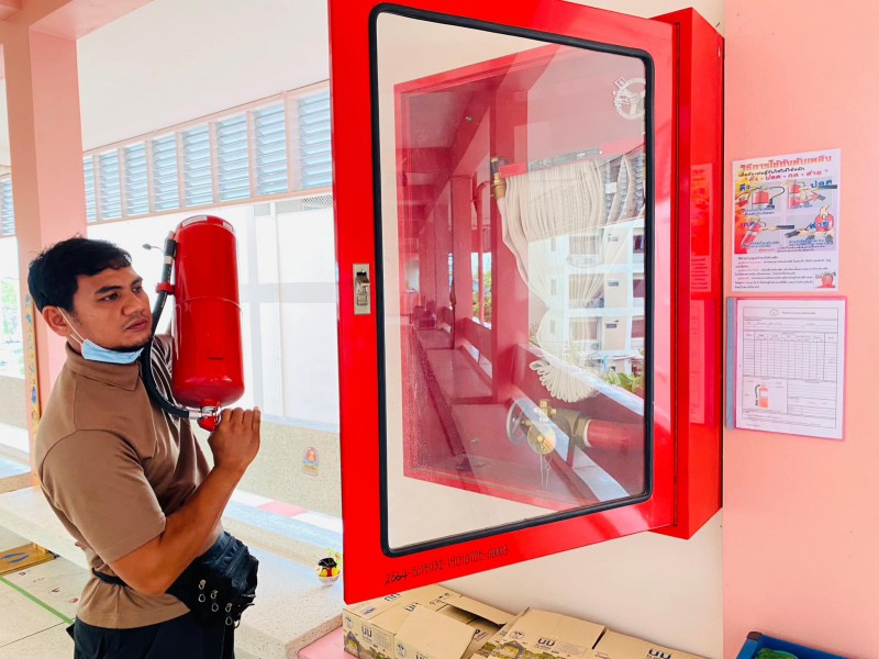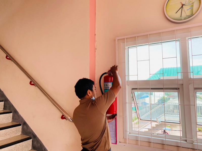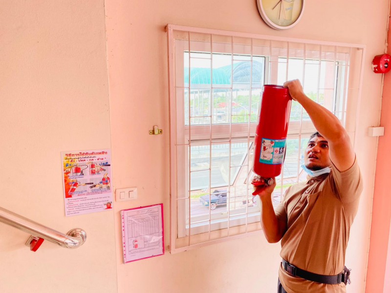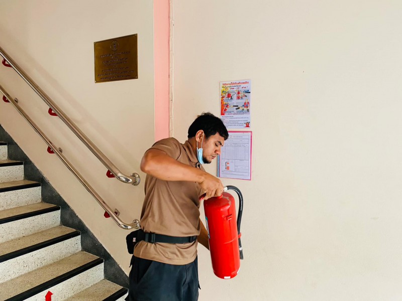 1. ตรวจสอบเครื่องดับเพลิงตรงคันบีบ ว่าอยู่ในสภาพเรียบร้อยหรือไม่