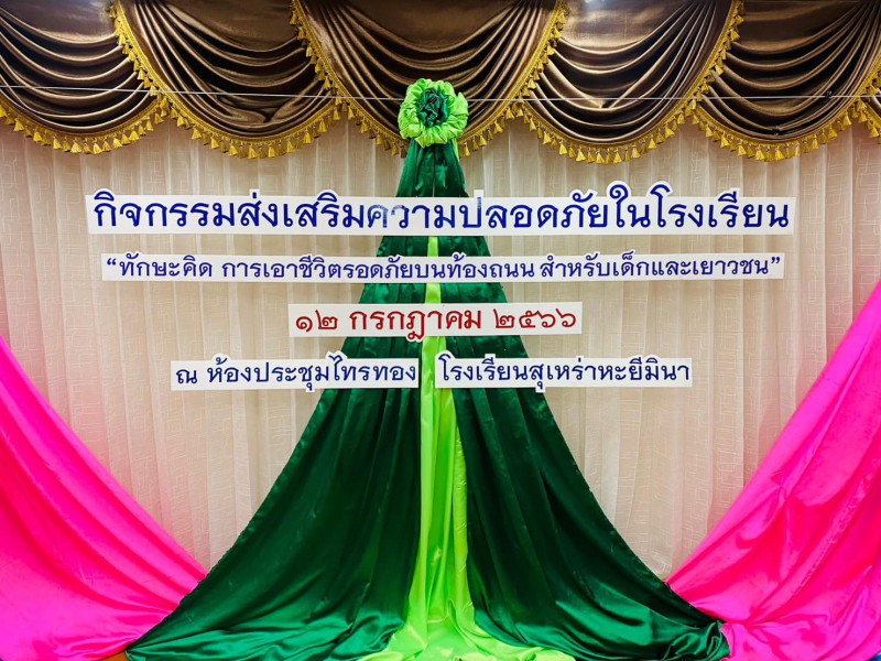โรงเรียนสุเหร่าหะยีมินา โดย ผอ.วรรธนพร อรุณประเสริฐศรี จัดกิจกรรมส่งเสริมความปลอดภัยในโรงเรียน ในหัวข้อ "ทักษะคิด การเอาชีวิตรอดภัยบนท้องถนน สำหรับเด็กและเยาวชน" เพื่อให้ความรู้ ความเข้าใจแก่นักเรียนในเรื่องของความปลอดภัยบนท้องถนนที่เราสามารถป้องกันและหลีกเลี่ยงได้ เพื่อไม่ให้เกิดอันตรายและการสูญเสียแก่ชีวิต แล้วสามารถนำไปถ่ายทอดให้แก่คนในครอบครัวได้ ณ ห้องประชุมไทรทอง โรงเรียนสุเหร่าหะยีมินา วันที่ 12 กรกฎาคม 2566 |