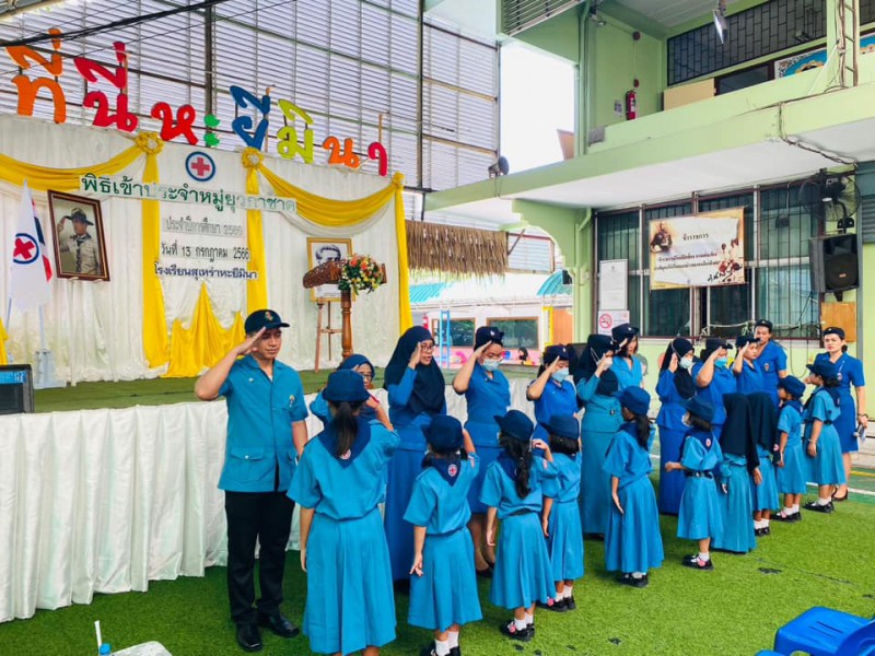 โรงเรียนสุเหร่าหะยีมินา โดย ผอ.วรรธนพร อรุณประเสริฐศรี จัดพิธีเข้าประจำหมู่ยุวการชาด เพื่อให้สมาชิกยุวกาชาดตระหนักถึงความสำคัญในการเป็นสมาชิกยุวกาชาด และยินดีที่จะอุทิศตนให้เป็นประโยชน์ต่อส่วนรวม สำนึกในหน้าที่และ ความรับผิดชอบของการเป็นสมาชิกยุวกาชาด และให้สมาชิกยุวกาชาดใหม่มีสิทธิ์ประดับเครื่องหมายสมาชิกยุวกาชาด ณ โรงเรียนสุเหร่าหะมินา วันที่ 13 กรกฎาคม 2566 |