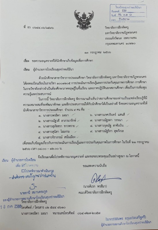 นางวรรธนพร อรุณประเสริฐศรี ผู้อำนวยการสถานศึกษาโรงเรียนสุเหร่าหะยีมินา มอบหมายให้รองผู้อำนวยการ ให้ความรู้ด้านการประกันคุณภาพภายในของสถานศึกษา แก่นักศึกษามหาวิทยาลัยราชภัฏพระนคร เอกการประถมศึกษา